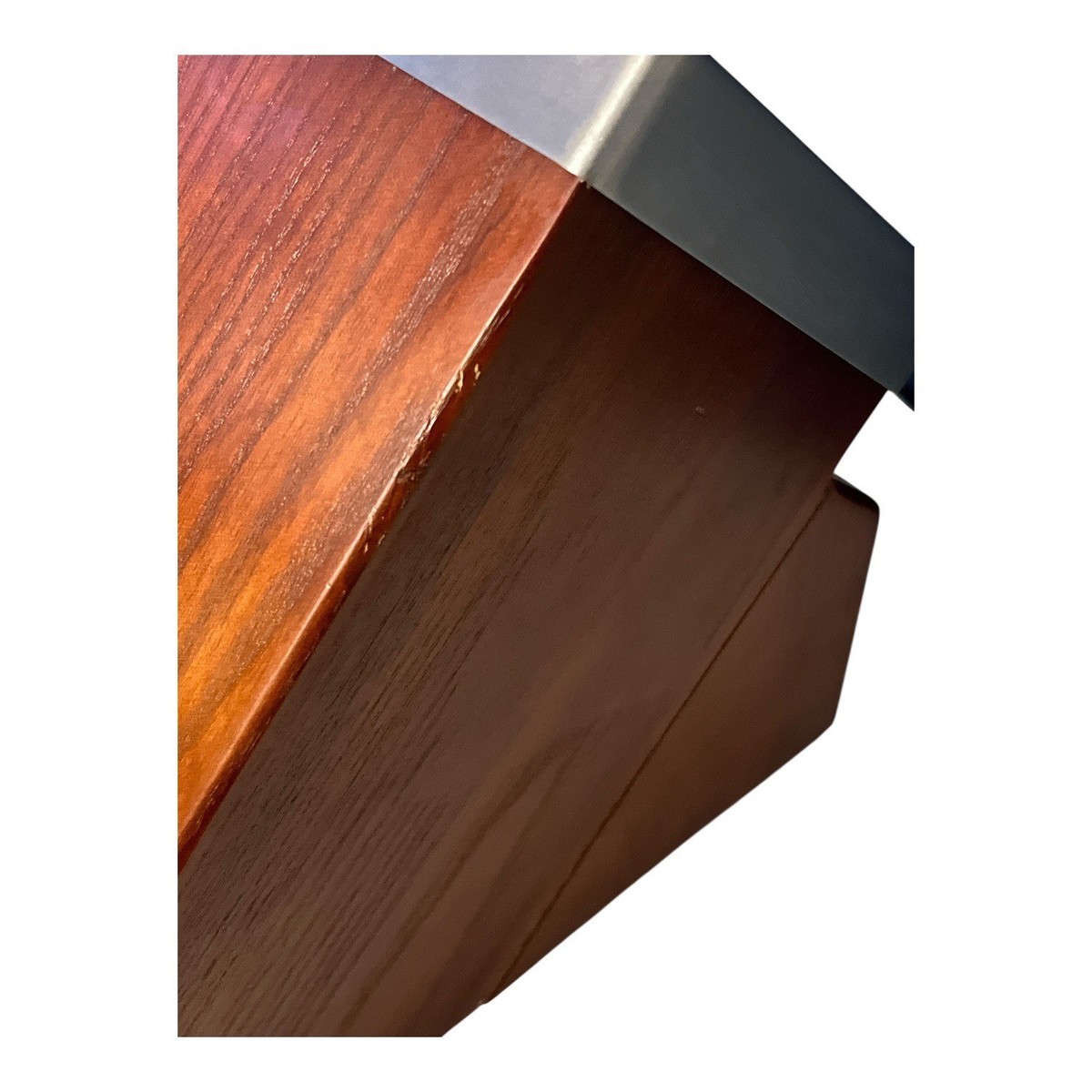 Good condition. There are light surface scratches, scuffs, and small areas of finish wear on the wood, consistent with normal use. There are a few spots of schmutz and minor edge wear along some seams, as shown in the photos. No cracks or structural issues noted. Please review all photos for exact condition.