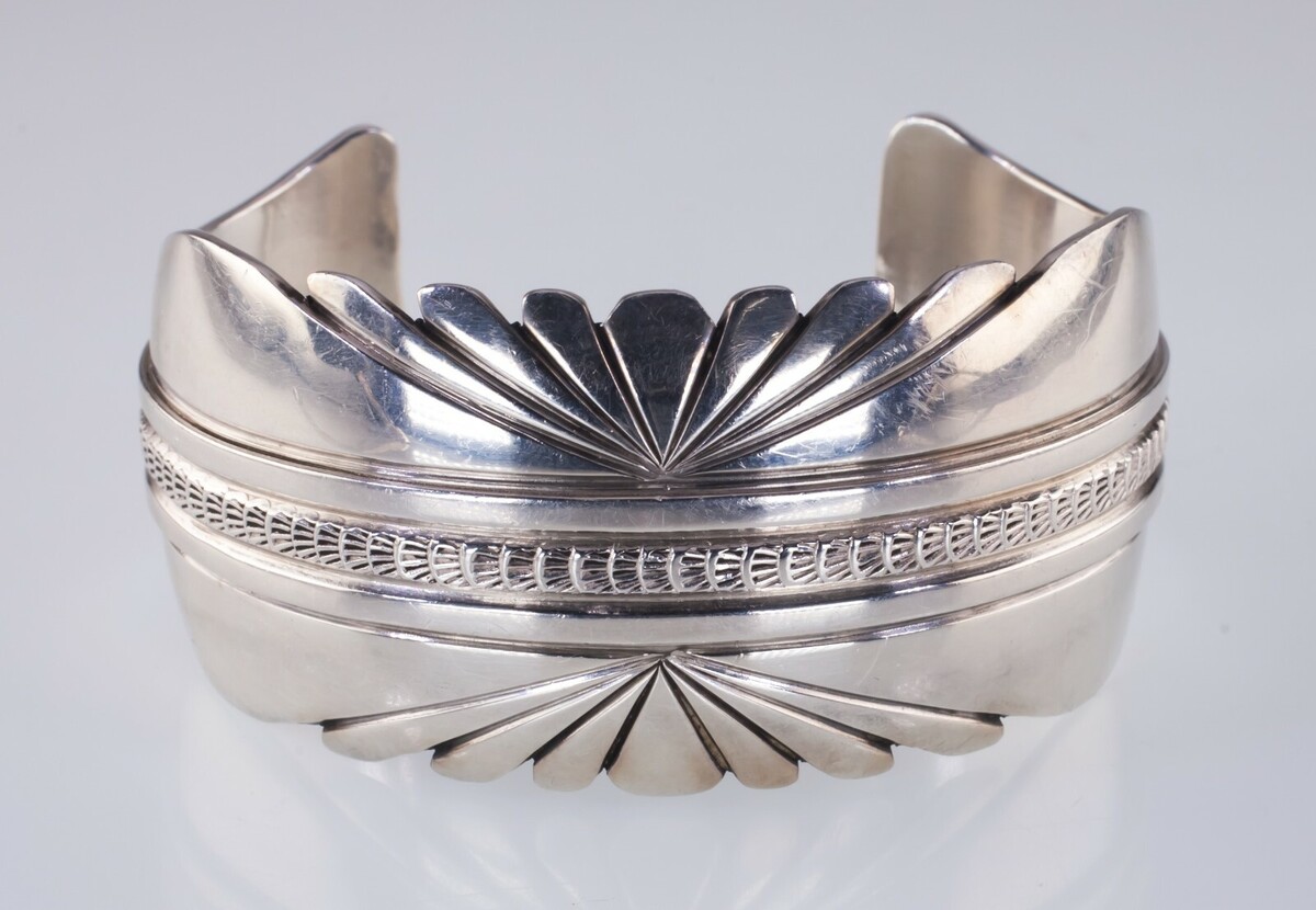 Gorgeous Navajo Sterling Cuff Bracelet by Lester Craig