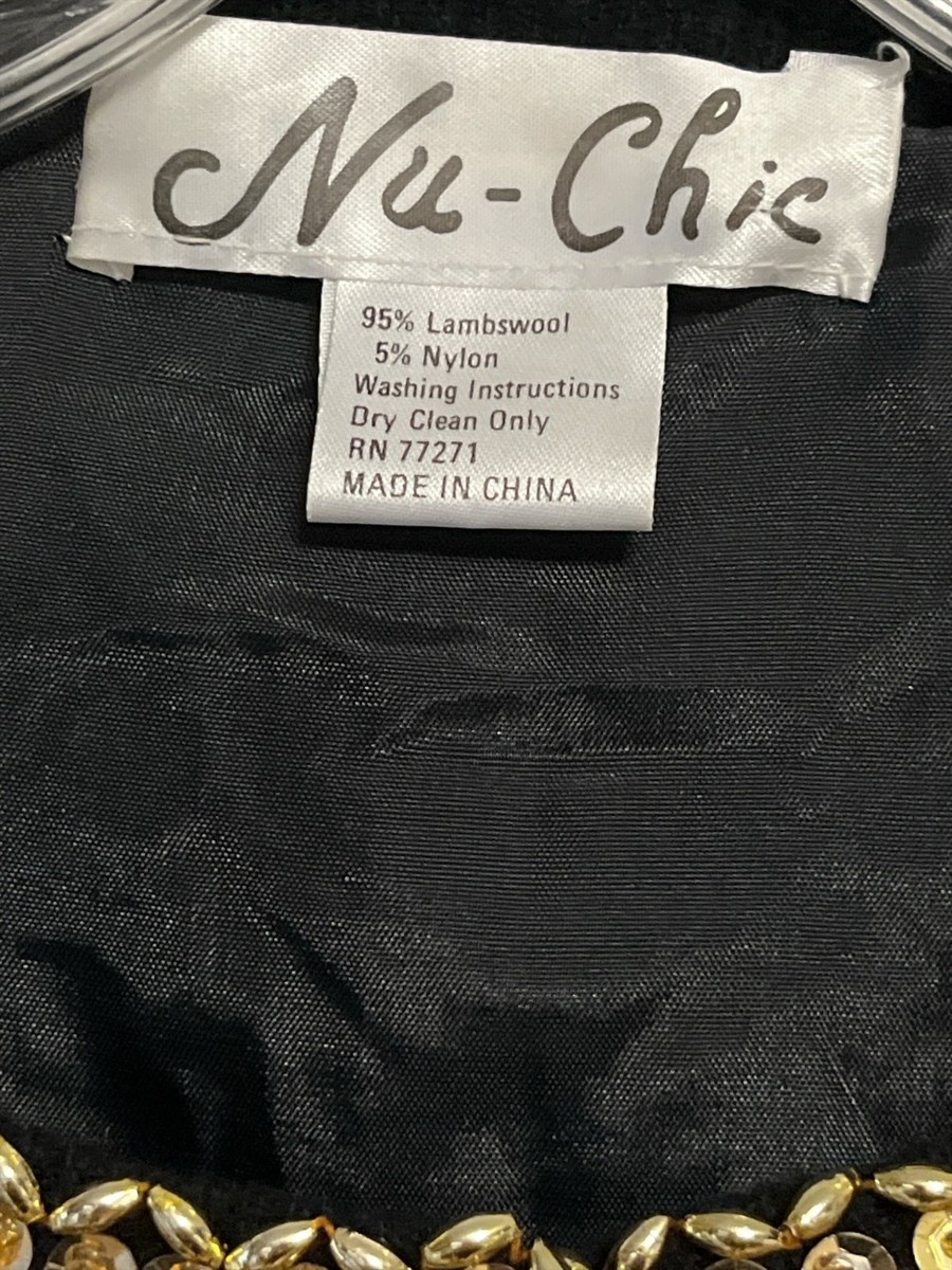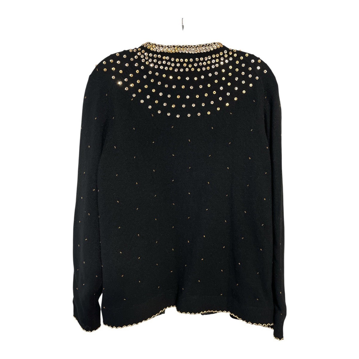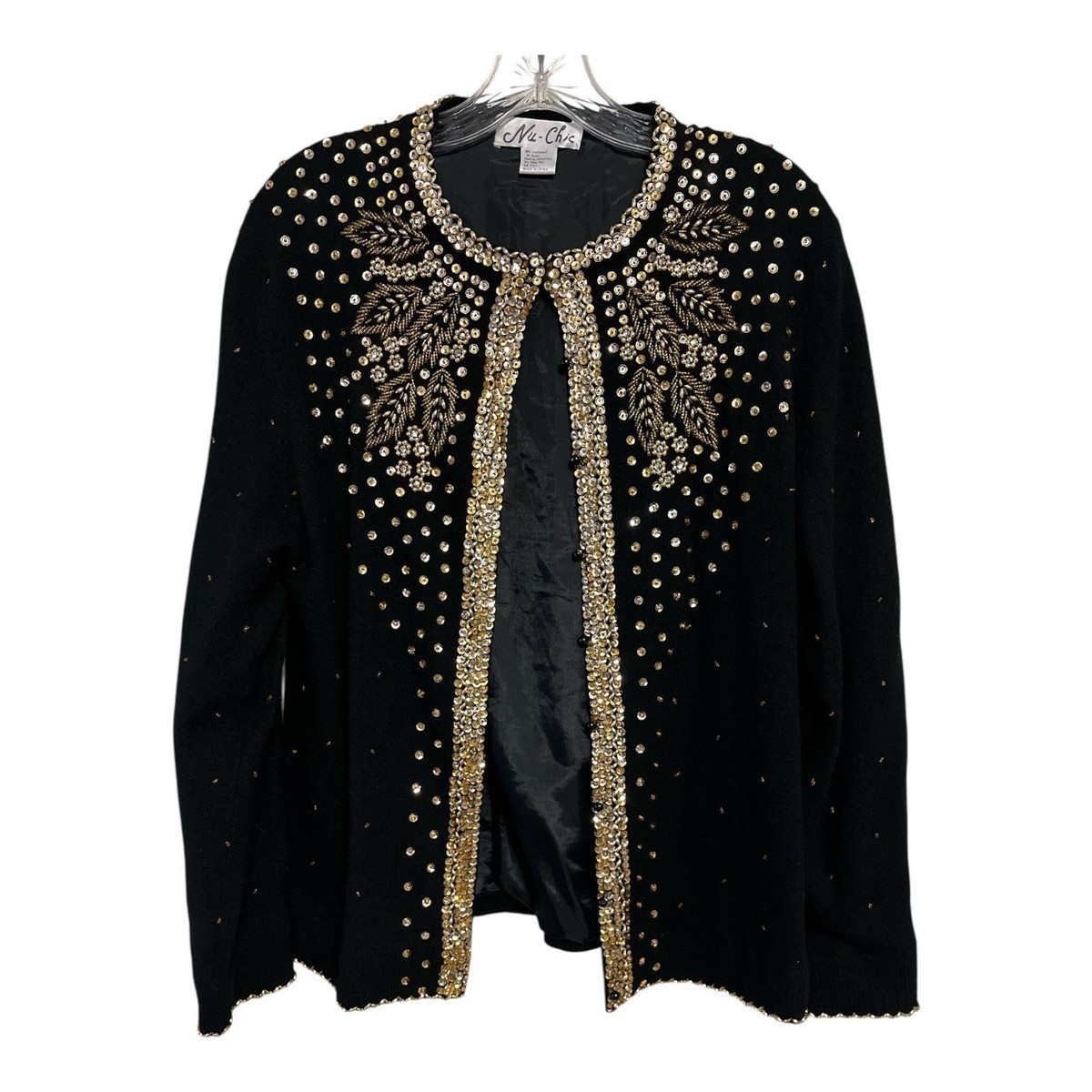 Nu Chic Beaded Lambswool Cardigan Sweater Black Gold Size 46