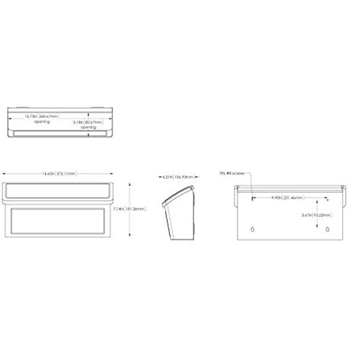 Mailbox is 14.7 in. W x 7.1 in. H x 4.2 in. D