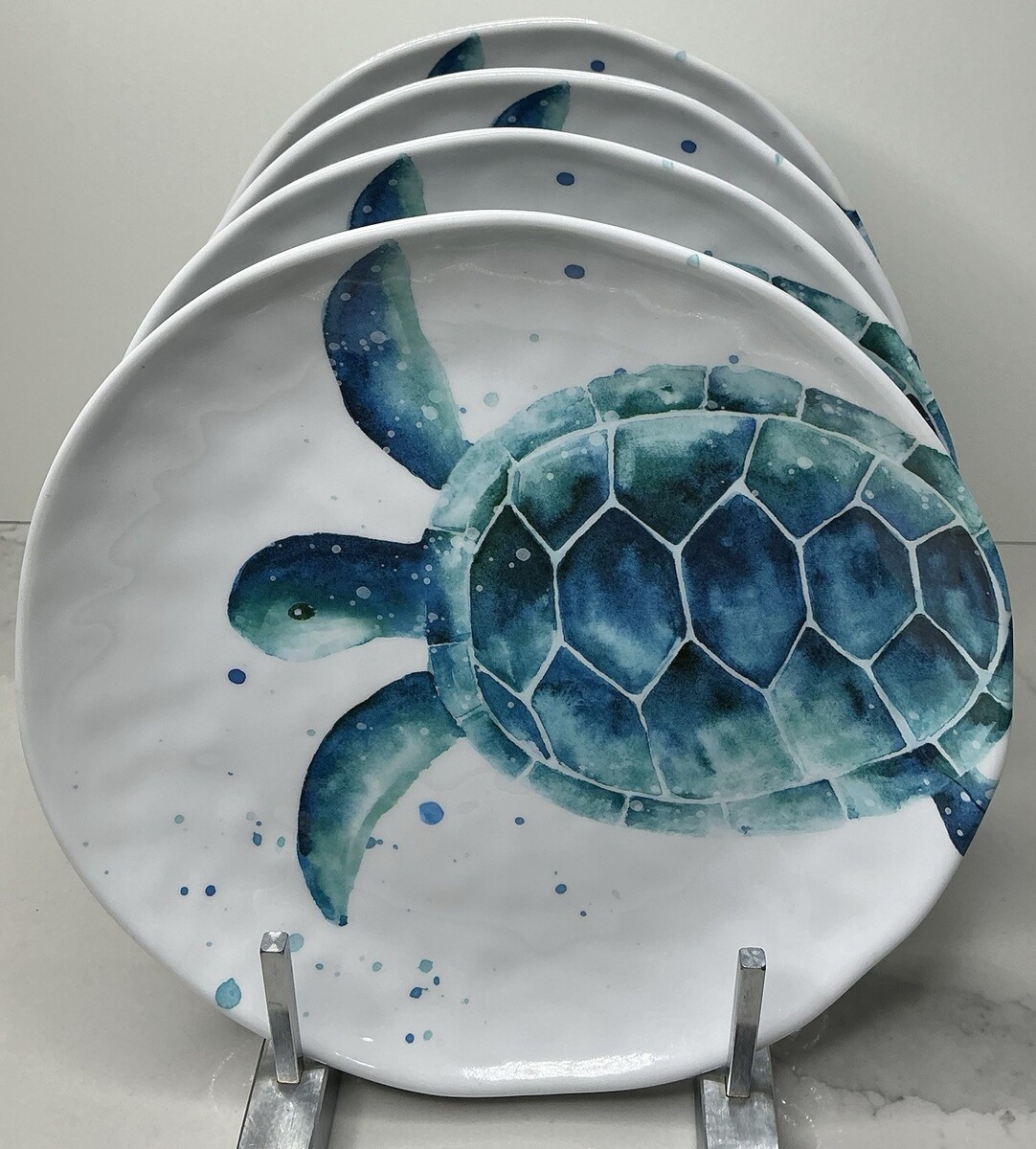 4 SIGRID OLSEN MELAMINE Salad Plates 9? Giant Sea Turtle Plates Outdoor New
