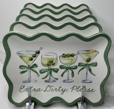 6 Martini Cocktail Party “Extra Dirty Please” Olive Appetizer Plates New