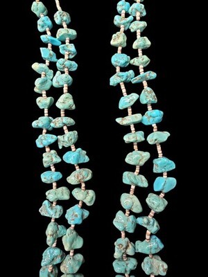 Vintage Native American Double Strand Turquoise Nugget Shell Heishi Necklace