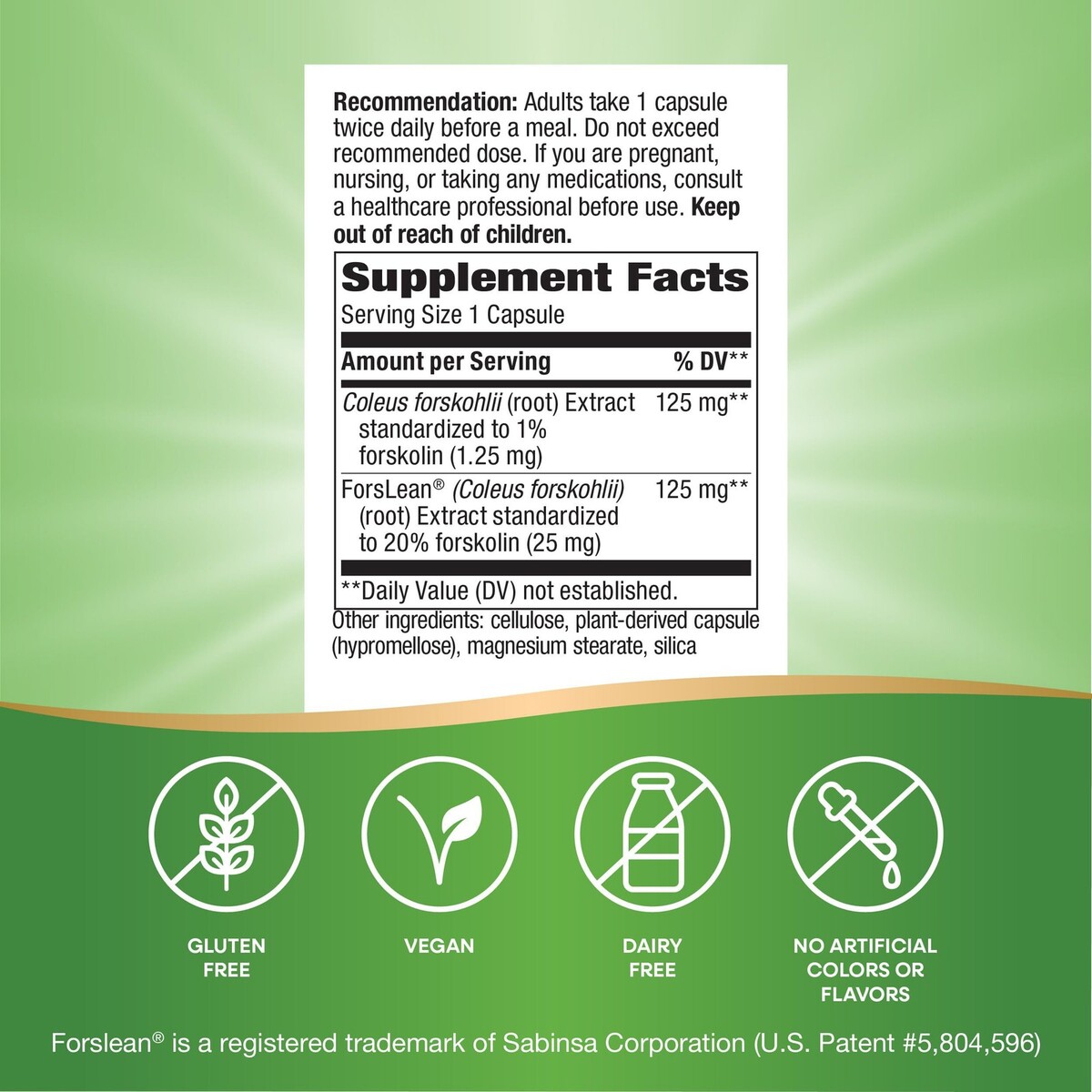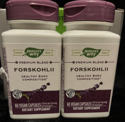2 Pack Dated 5/31/2025 ? Nature's Way Forskohlii supports healthy body composition.* ? With ForsLean extract, which guarantees 20% forskolin. (125 mg per serving) ? Adults take 1 capsule twice daily before a meal. ? Vegan. No gluten, wheat, corn, soy, dairy, gelatin, or artificial colors or flavors. ? At Nature?s Way, we believe nature is the ultimate problem solver. For over 50 years, we have looked to the natural world for inspiration. Our quality vitamins and supplements are formulated to help you find your way to wellness.