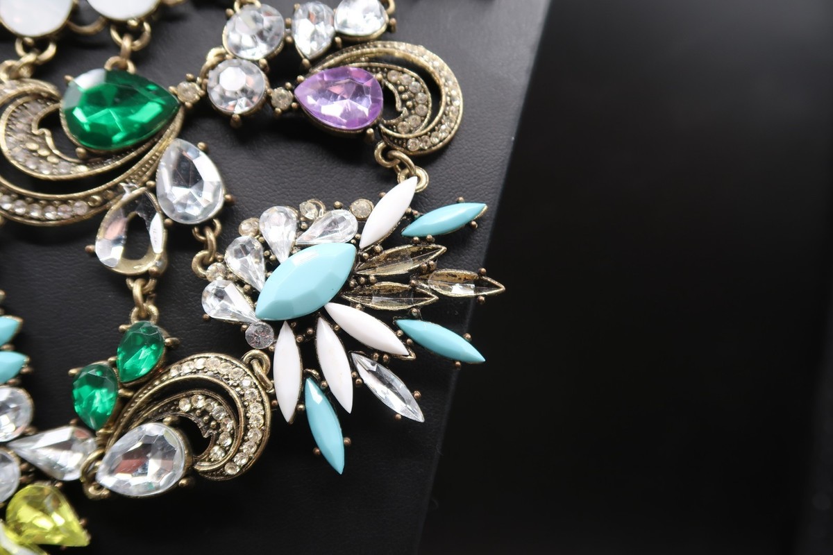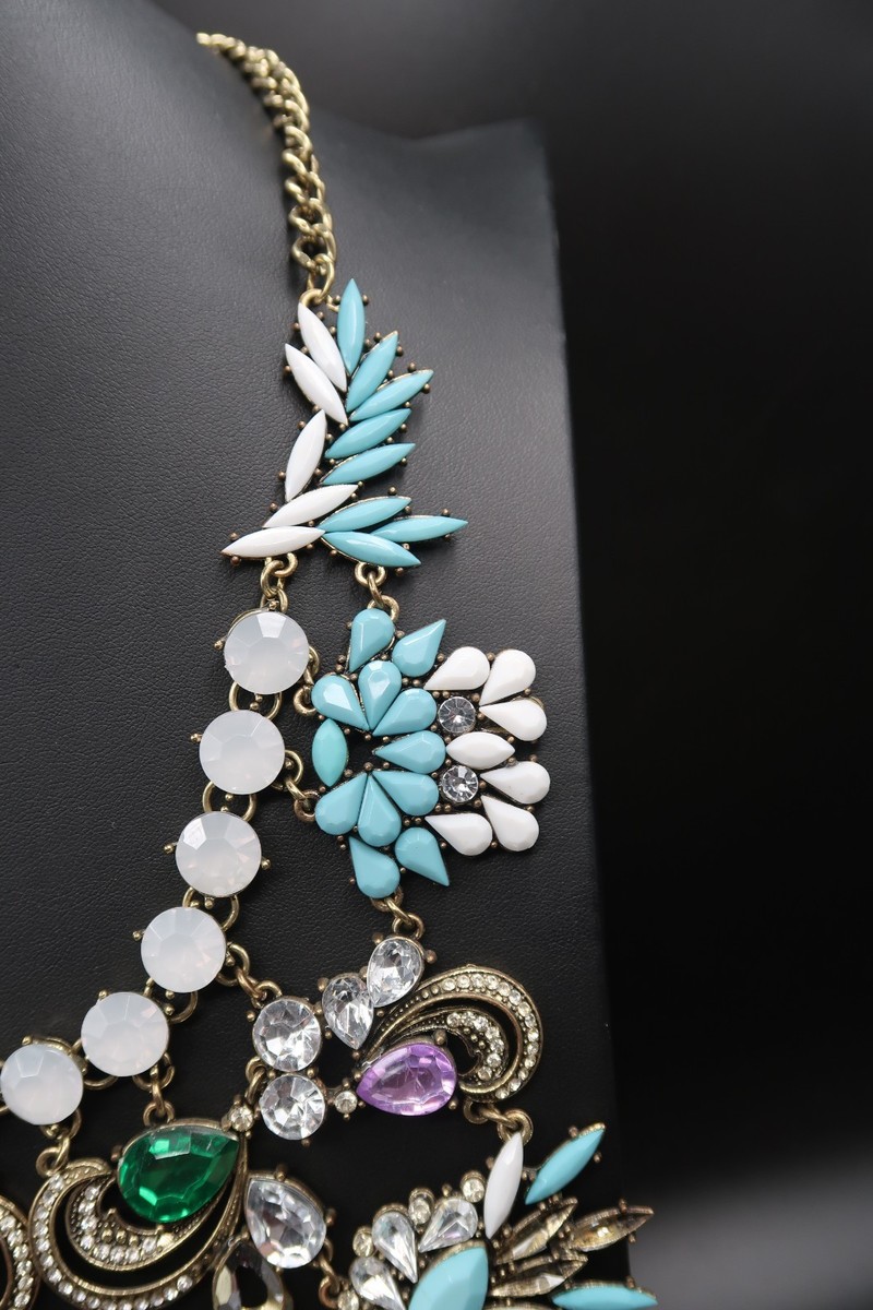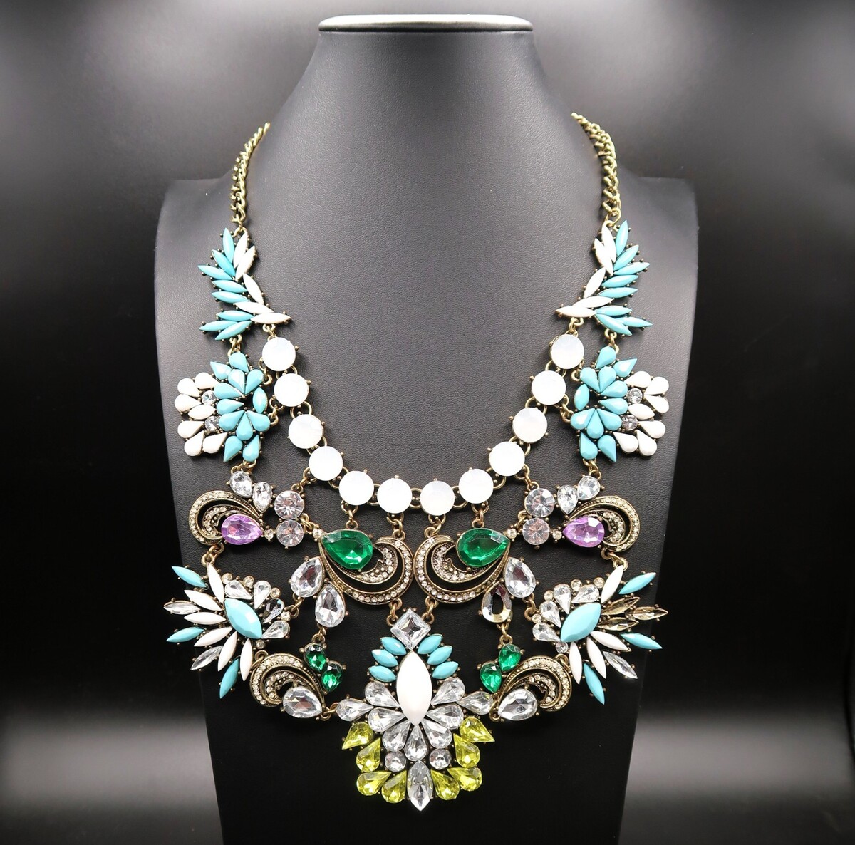 Vtg Gigantic Elaborate Gold Tone Lucite Statement Necklace Rhinestone Studded