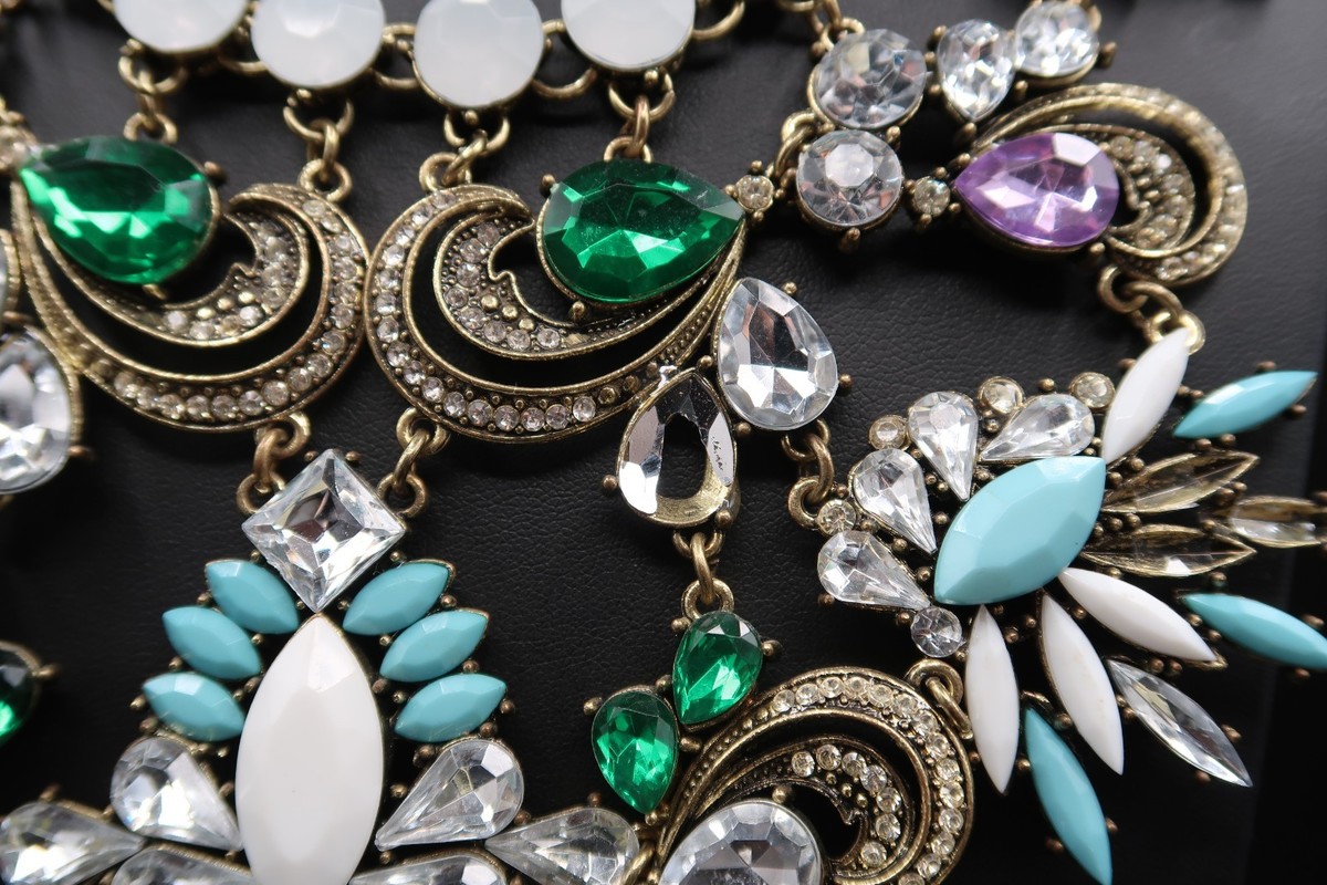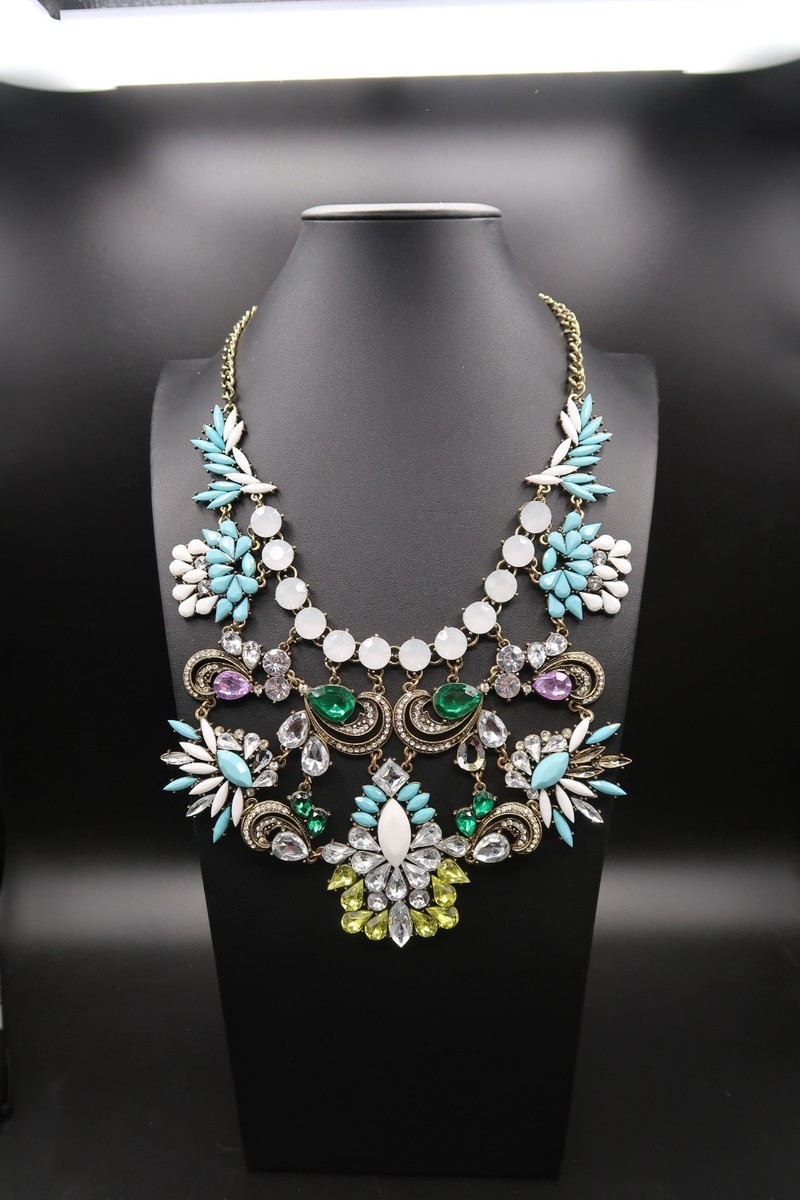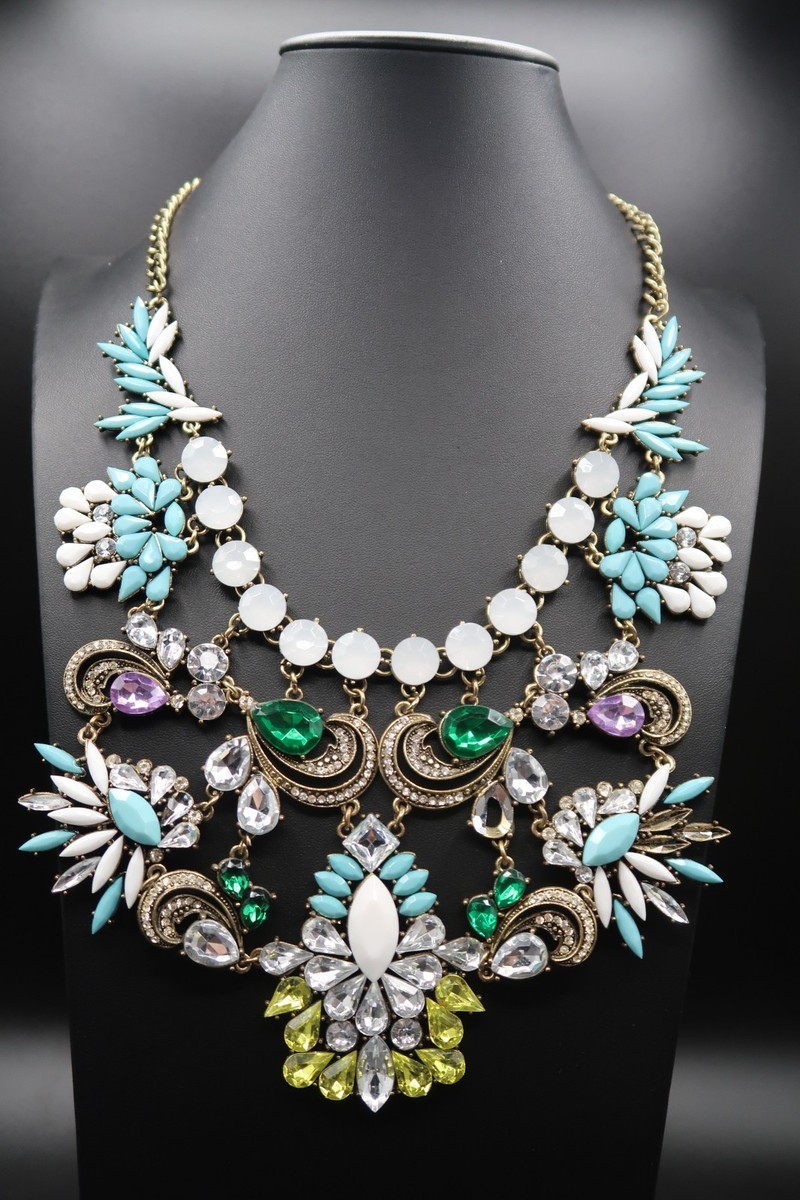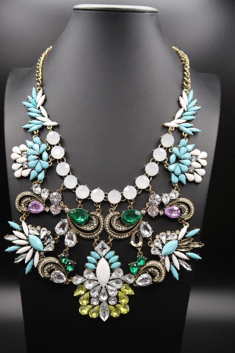 Vtg Gigantic Elaborate Gold Tone Lucite Statement Necklace Rhinestone Studded