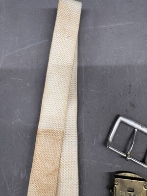 Vintage WWII U.S Military Navy Issue White Web Trouser Belt Solid Brass Buckle