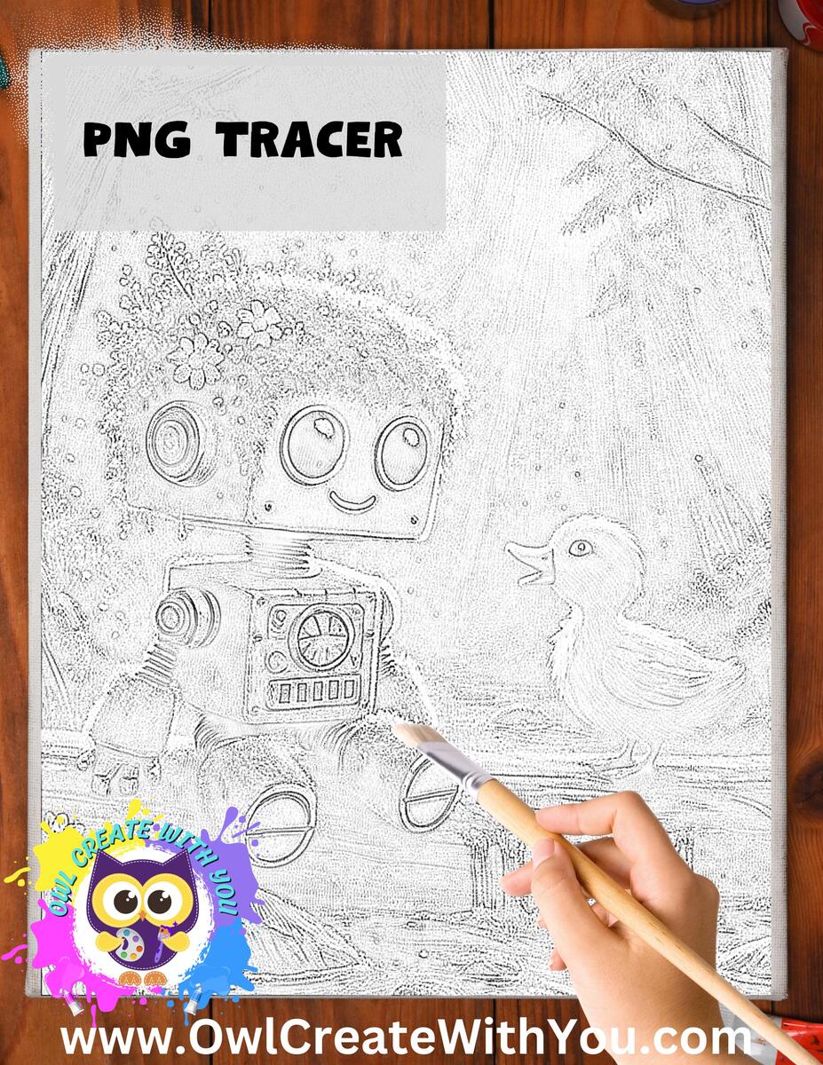 Includes: Easy Canvas Transfer Guide, Black and White Tracer Colored Reference Image