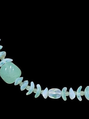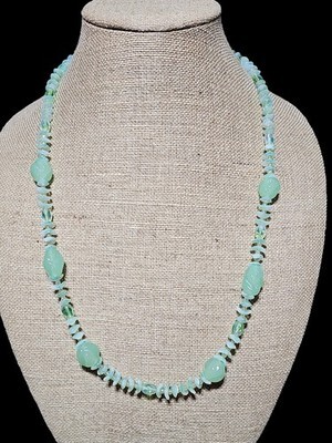 Vintage Miriam Haskell Green Glass Necklace 30"
