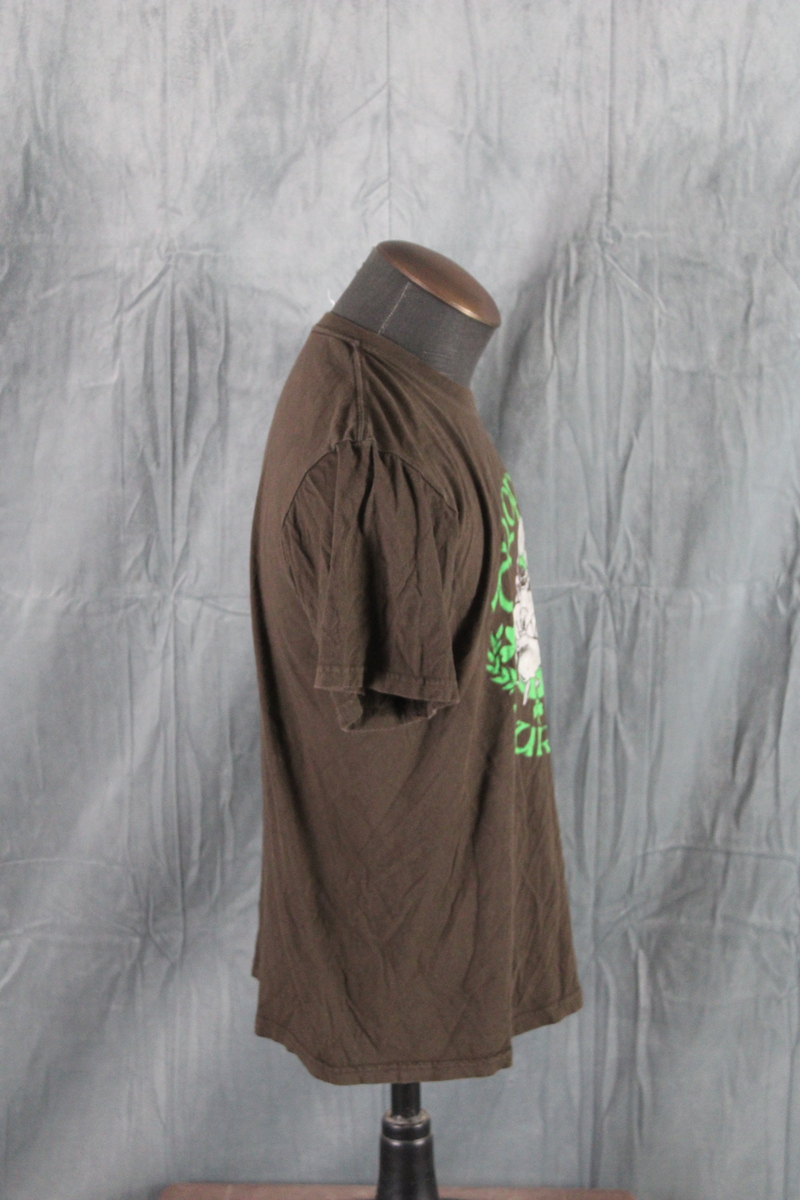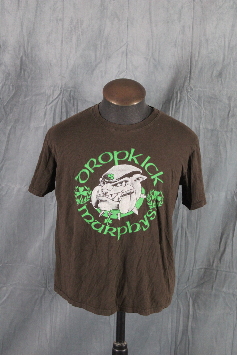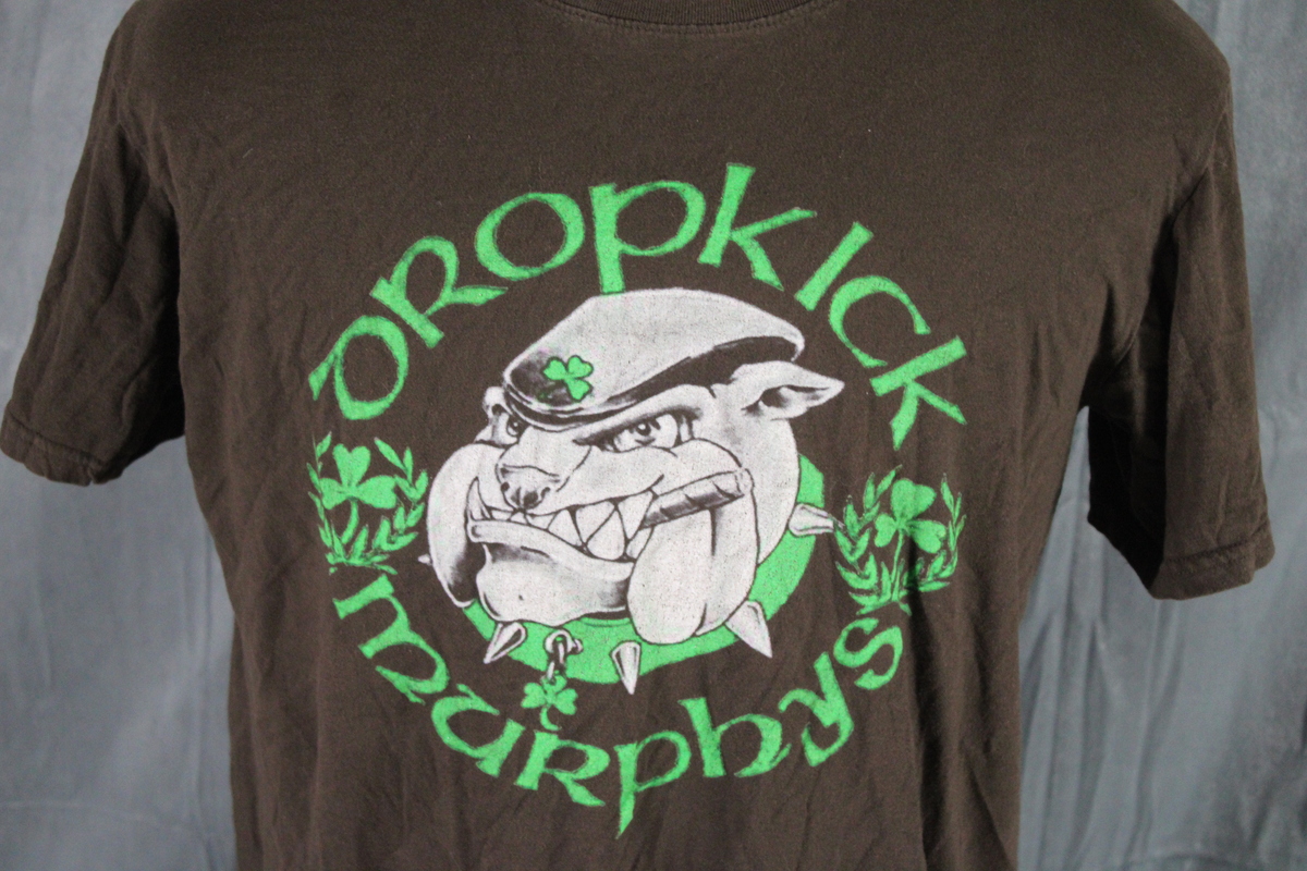 Up for sale is a retro punk shirt. It has a brown base colour with the Dropkick Murphys bulldog graphic screened on the chest. What a great shirt do not miss out on it.