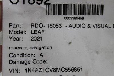 Audio Equipment Radio Receiver With Navigation 2021-2022 NISSAN LEAF OEM #41685