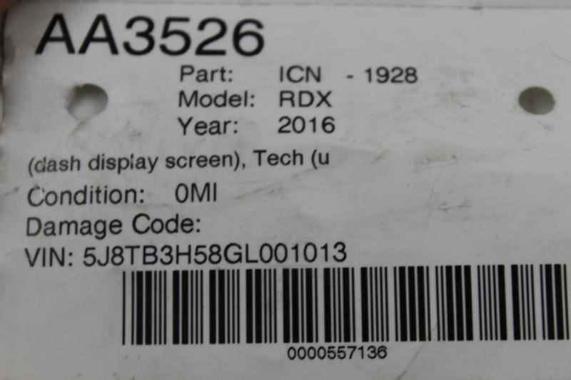Info-GPS-TV Screen Dash Display Screen Advance Upper 2016-18 ACURA RDX OEM 13006