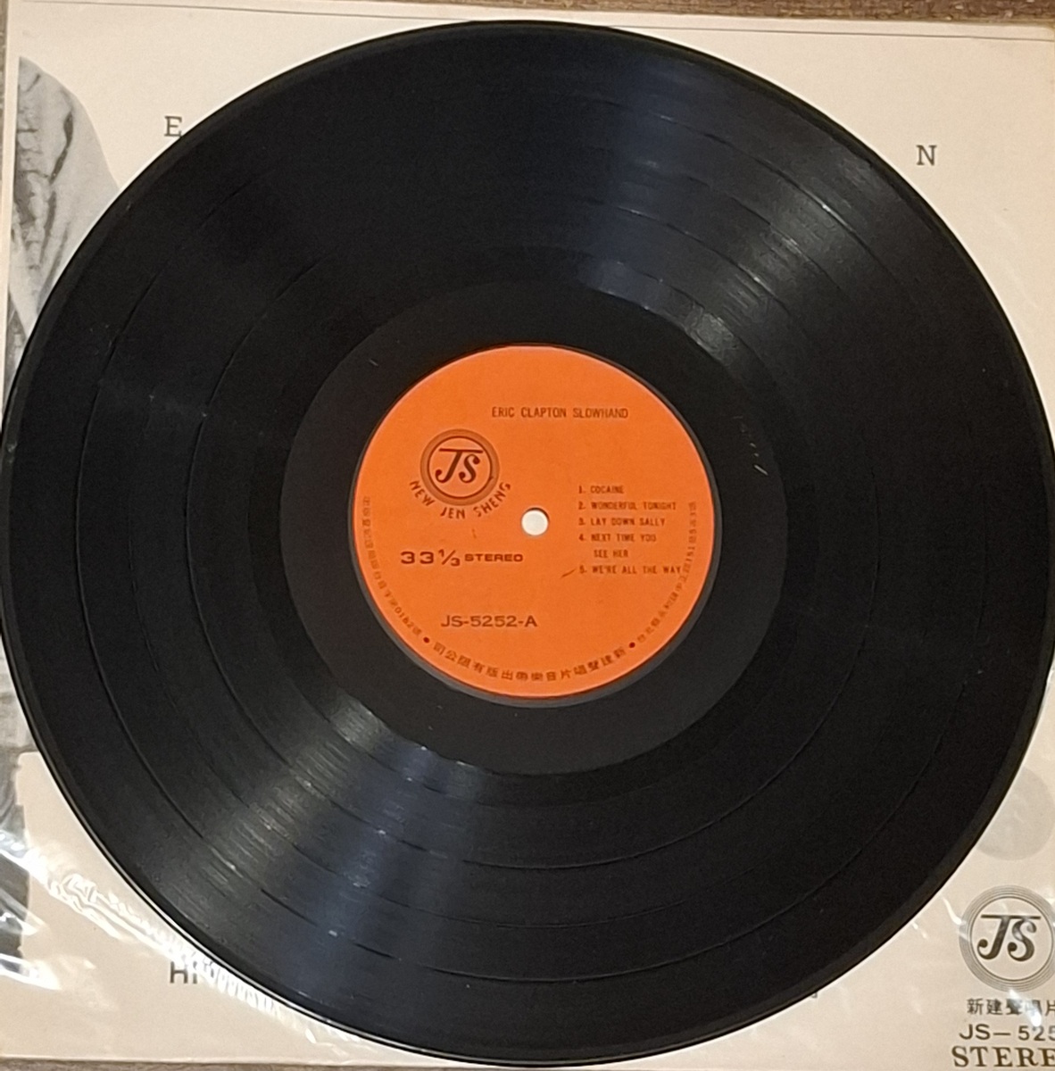 Eric Clapton, Slowhand, Vinyl Record, LP Record, Classic Rock, 1970s Rock, 1977 Album, Cocaine, Wonderful Tonight, Lay Down Sally, Rare Vinyl, Taiwan Pressing, Taiwan Vinyl, New Jen Sheng, JS Label, Import LP, Collectible Vinyl, Rock LP, Vintage Vinyl, Guitar Rock, Blues Rock, Stereo LP, JS-5252, Record Collector, Vinyl Collection