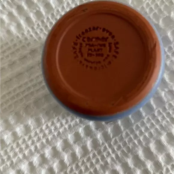 Blue terracotta pot; Inside glaze Engraved with name brand