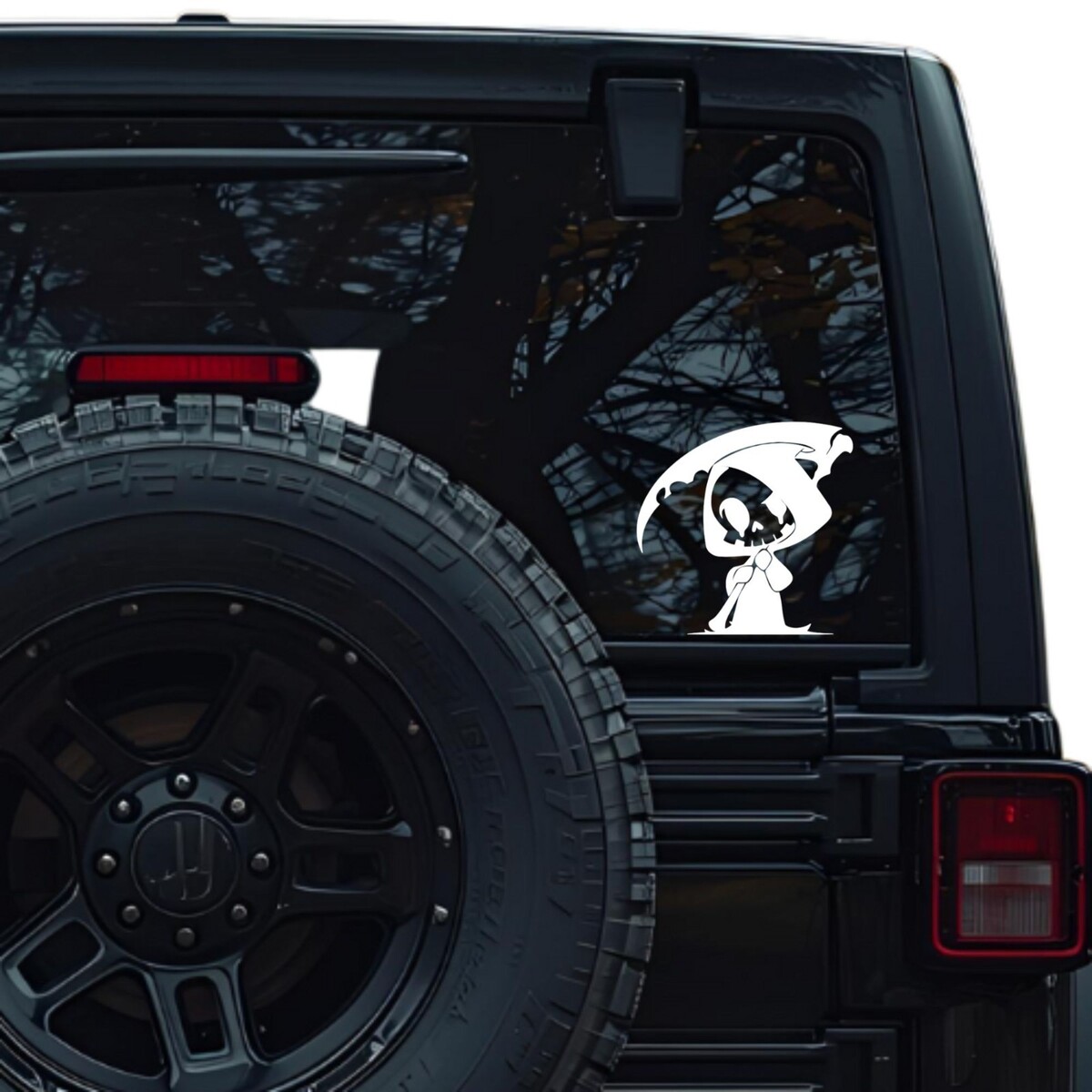 Cute Grim Reaper Scythe Vinyl Decal Scary Funny Halloween Style Sticker