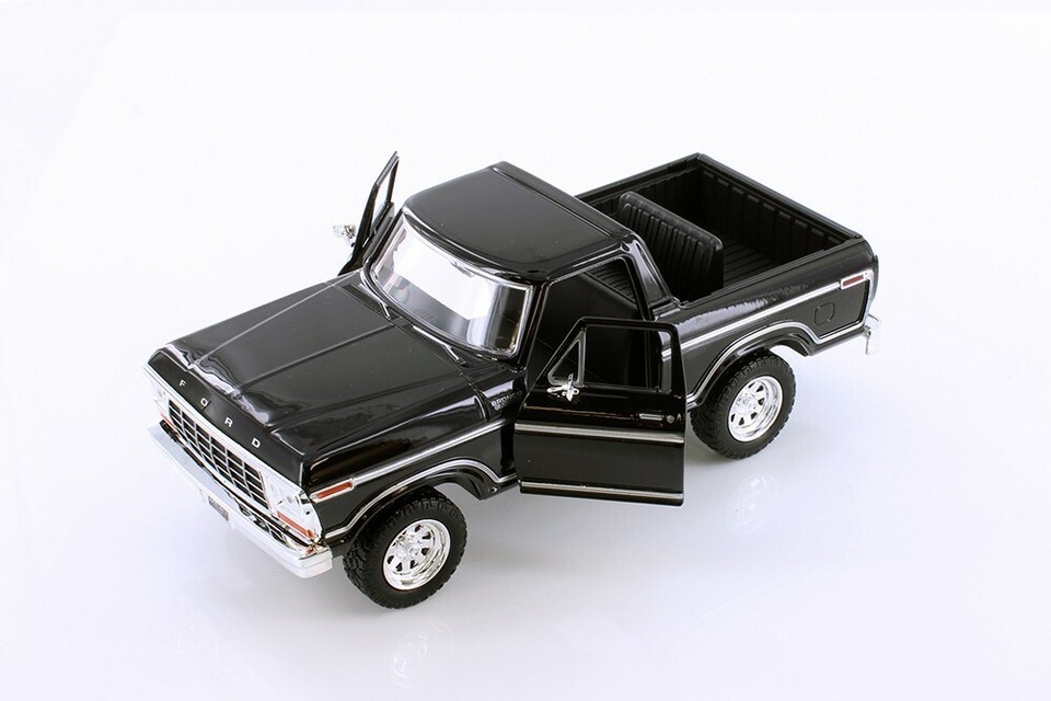 1978 Ford Bronco Pickup - BLACK - 1/24 Scale Diecast Model - Motormax w/ BOX