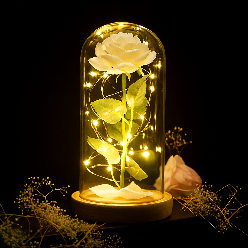 White Rose in Dome with LED Lights,