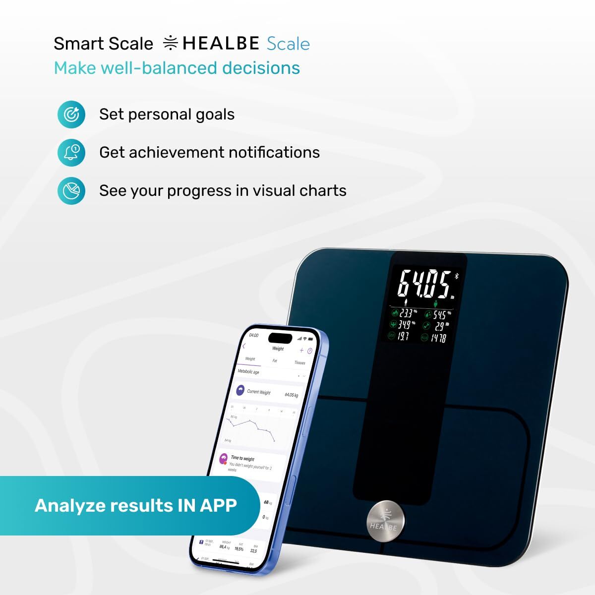 Product description: The HEALBE Start Control 2 Kit includes two devices designed to improve your wellness, lifestyle, and physical activity: 1) HEALBE Scale ? smart floor scales; 2) HEALBE GoBe U ? the unique smart band. Both devices work seamlessly together via the HEALBE mobile app, giving you a complete picture of your body?s current state.