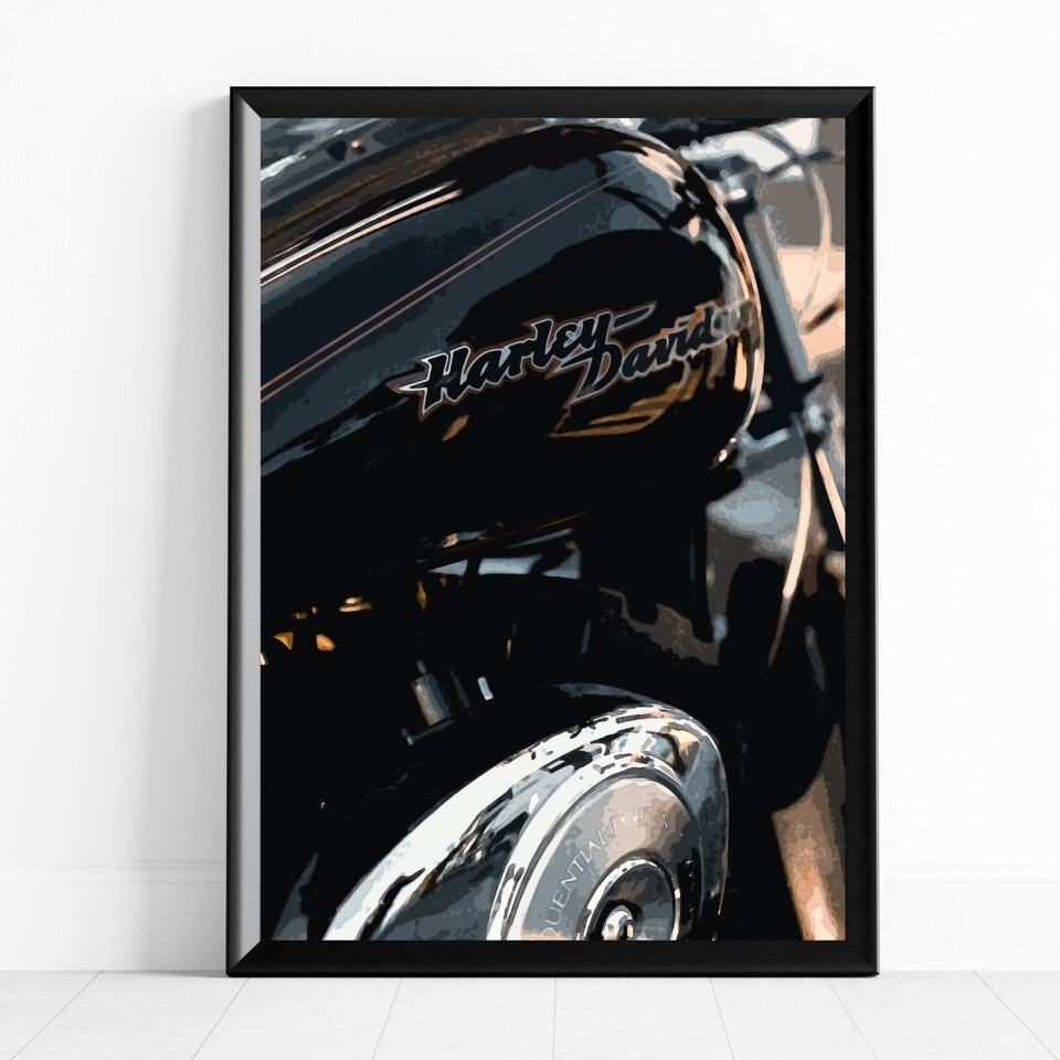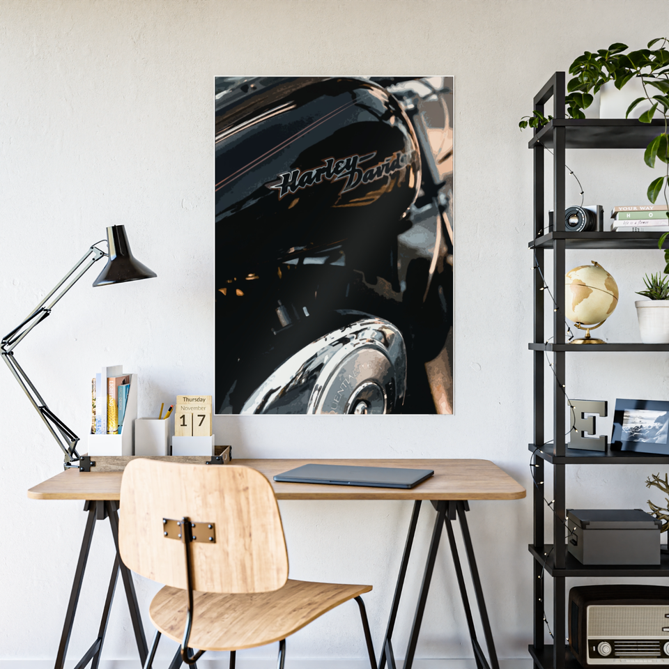 Harley Illustration Motorcycle Wall Art Home & Decor Gloss Poster Classic Print