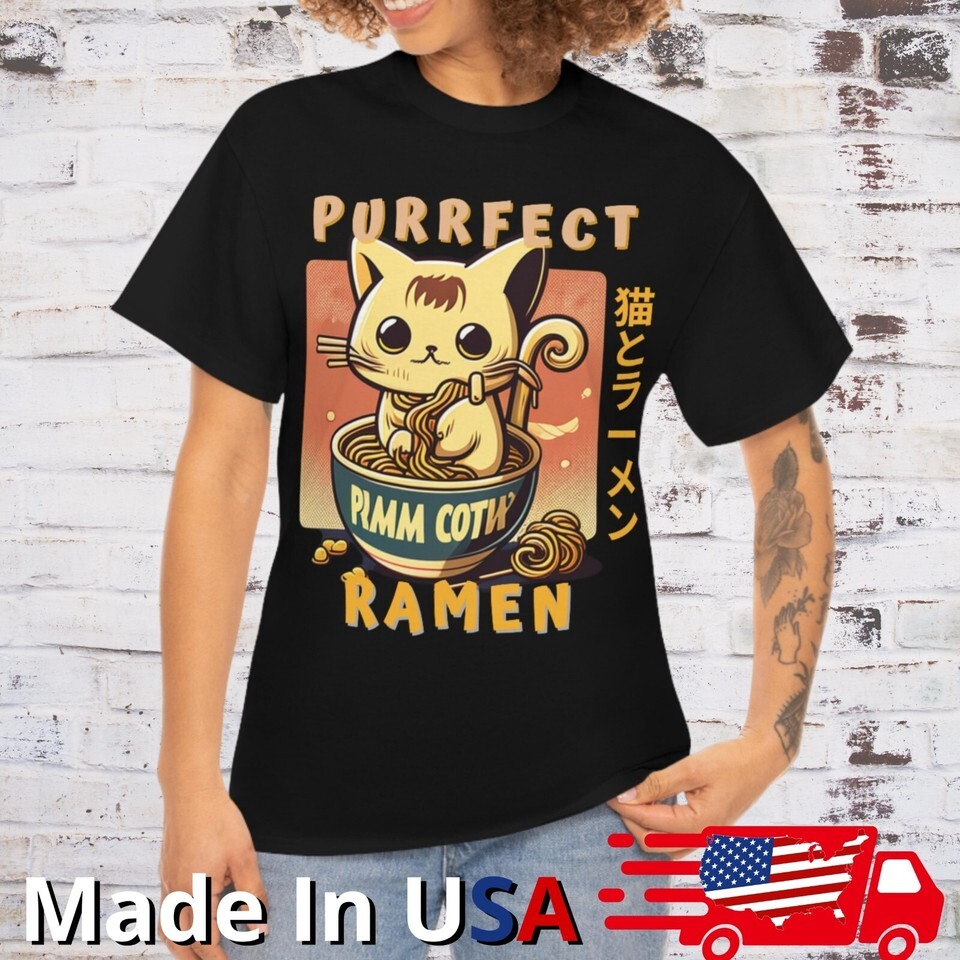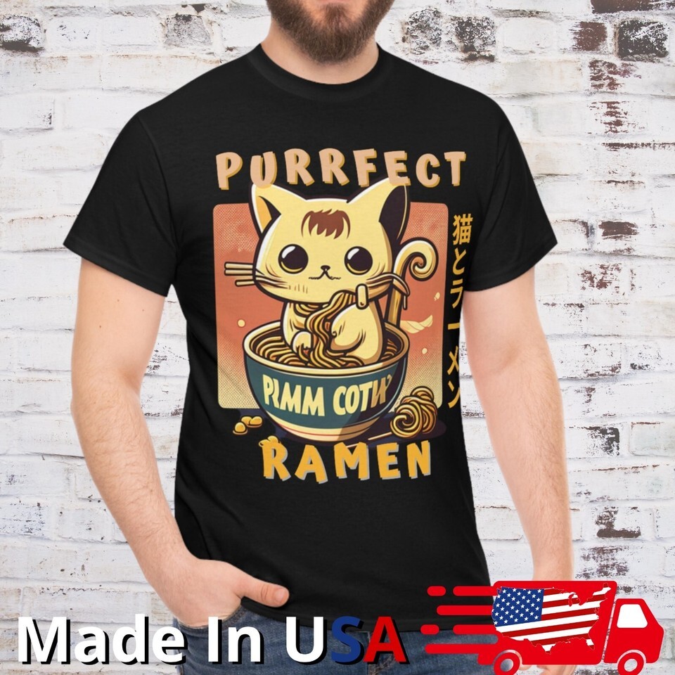 Cat Ramen T Shirt Japan Anime Clothes Manga Cosplay Cute Kitten Noodles Adorable