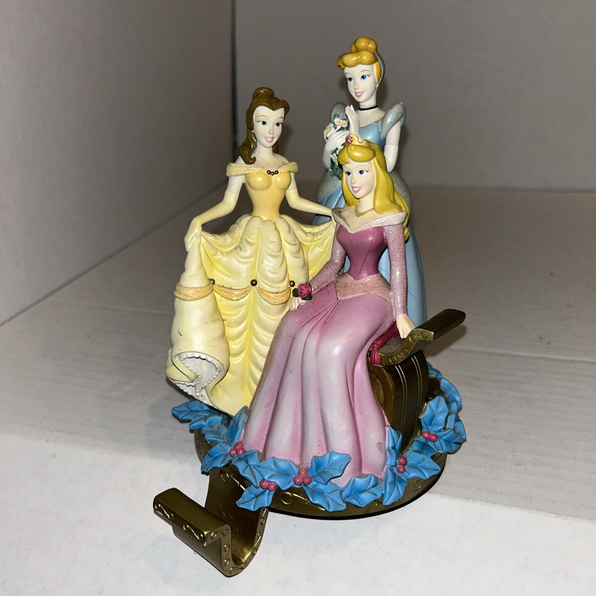 Disney Princess Holiday Stocking Hanger Holder Cinderella Belle Aurora Gold Base