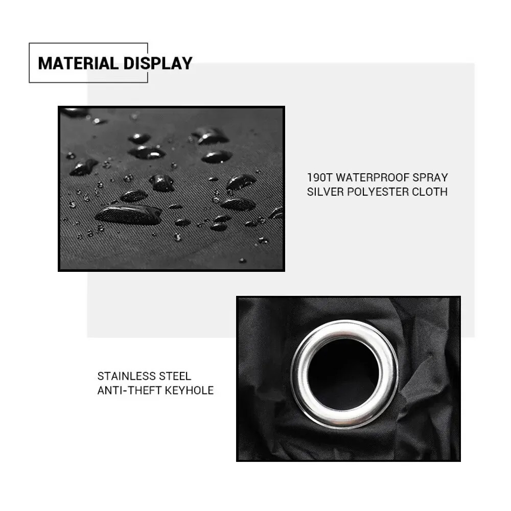 Constructed from durable 190T weather-resistant fabric, the cover protects against rain, sun exposure, dust, dirt, and UV rays, helping prevent fading, corrosion, and surface damage. The lightweight yet strong material allows for easy handling while remaining tough enough for daily outdoor use.