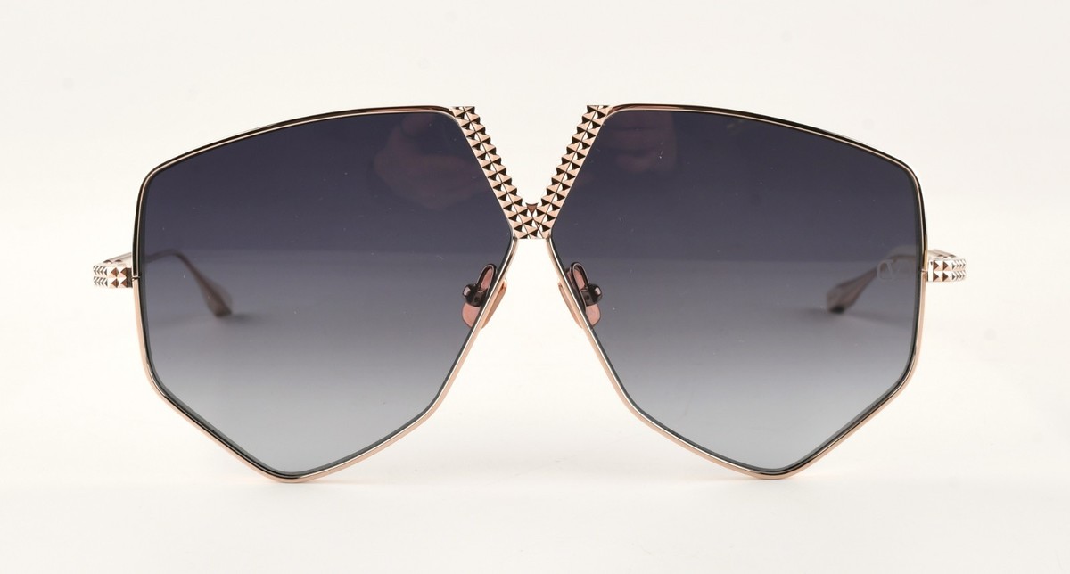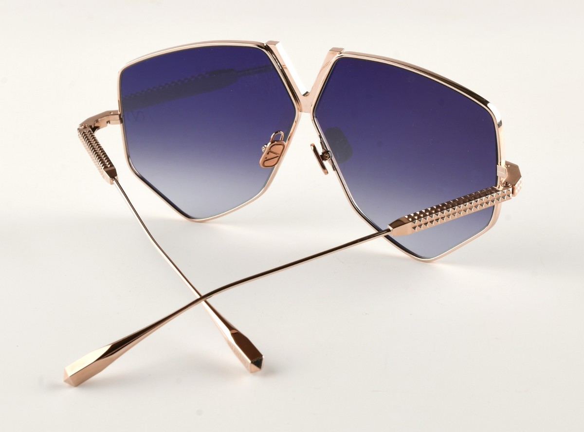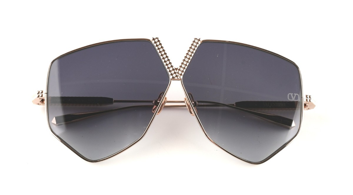*Valentino V-Hexagon VLS-115A-64 Gold Oversized Platinum Gray Sunglasses