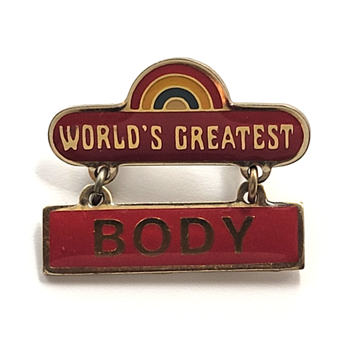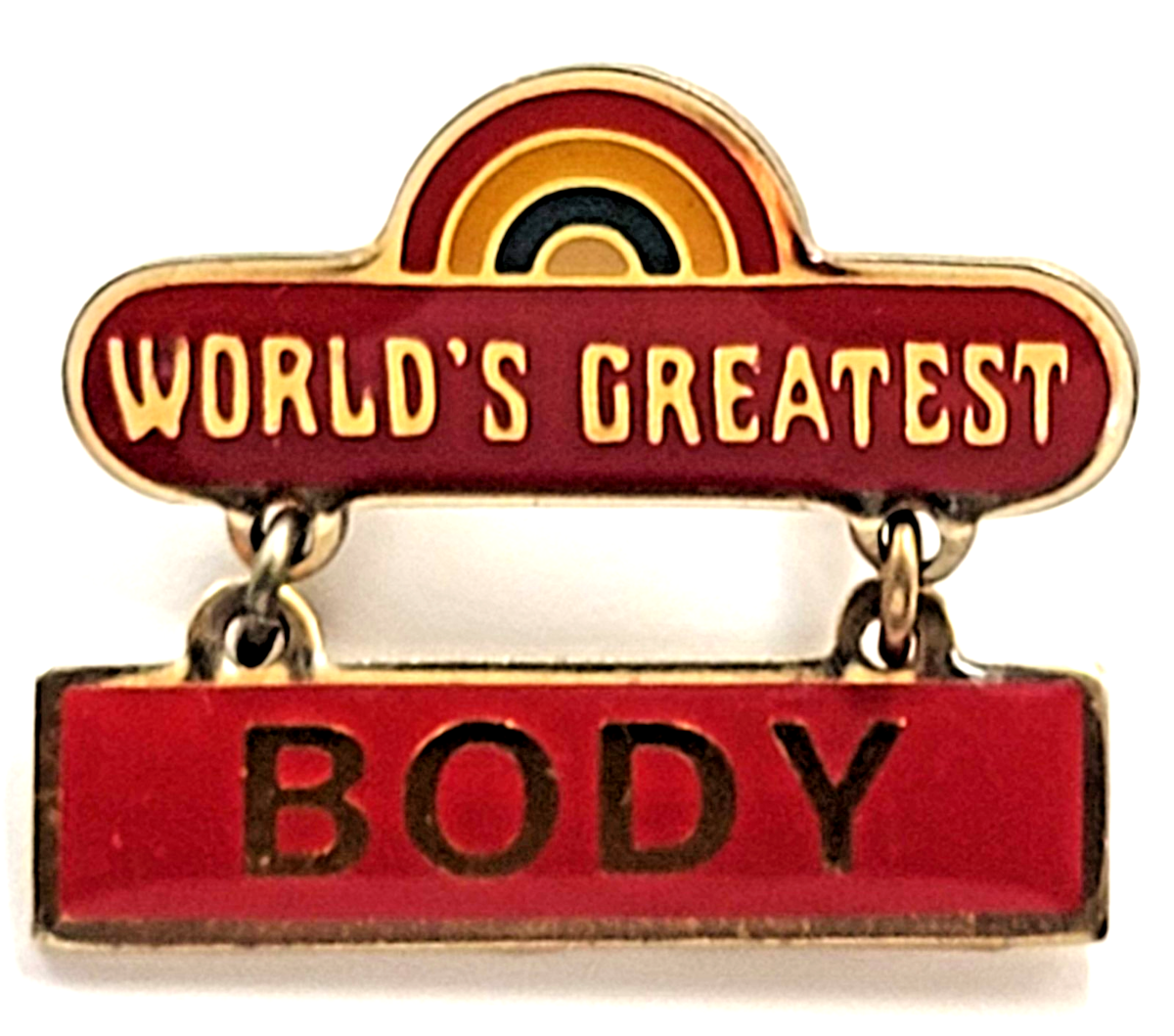 Worlds Greatest Body Dangle Enamel Pin Rainbow Accent Novelty Humor Vintage