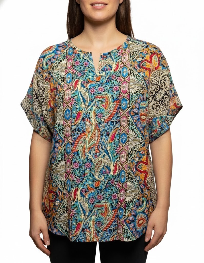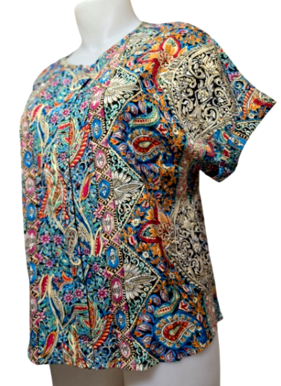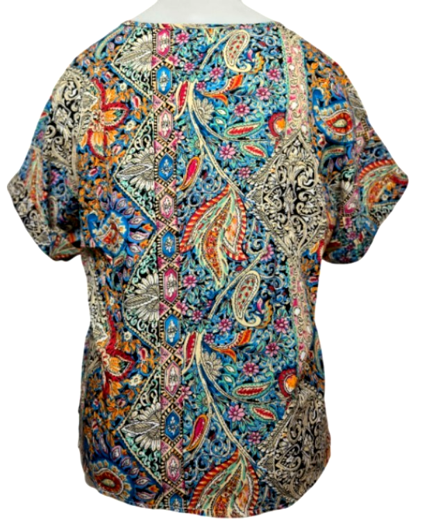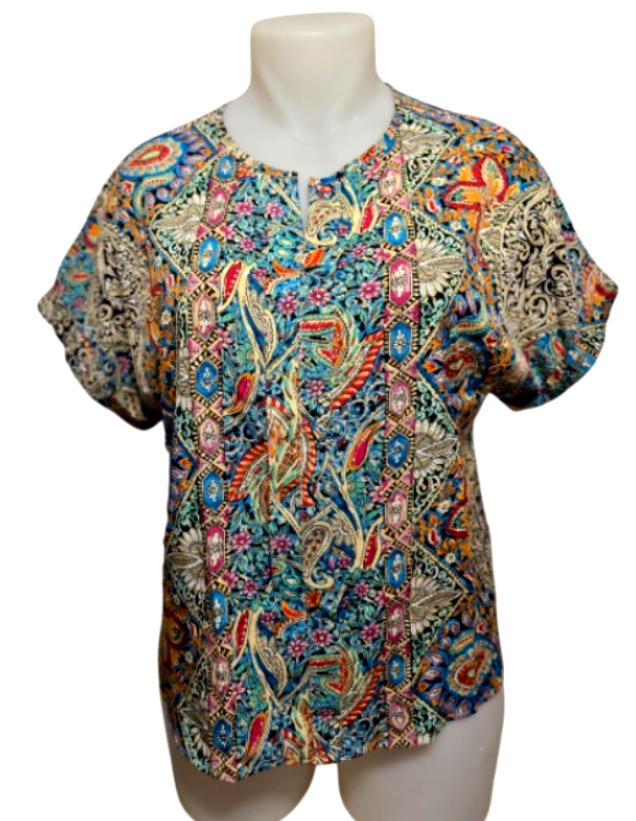 Elegant Bohemian Multi- Color Short-Sleeve V-Neck Women Top Blouse (XL) NEW