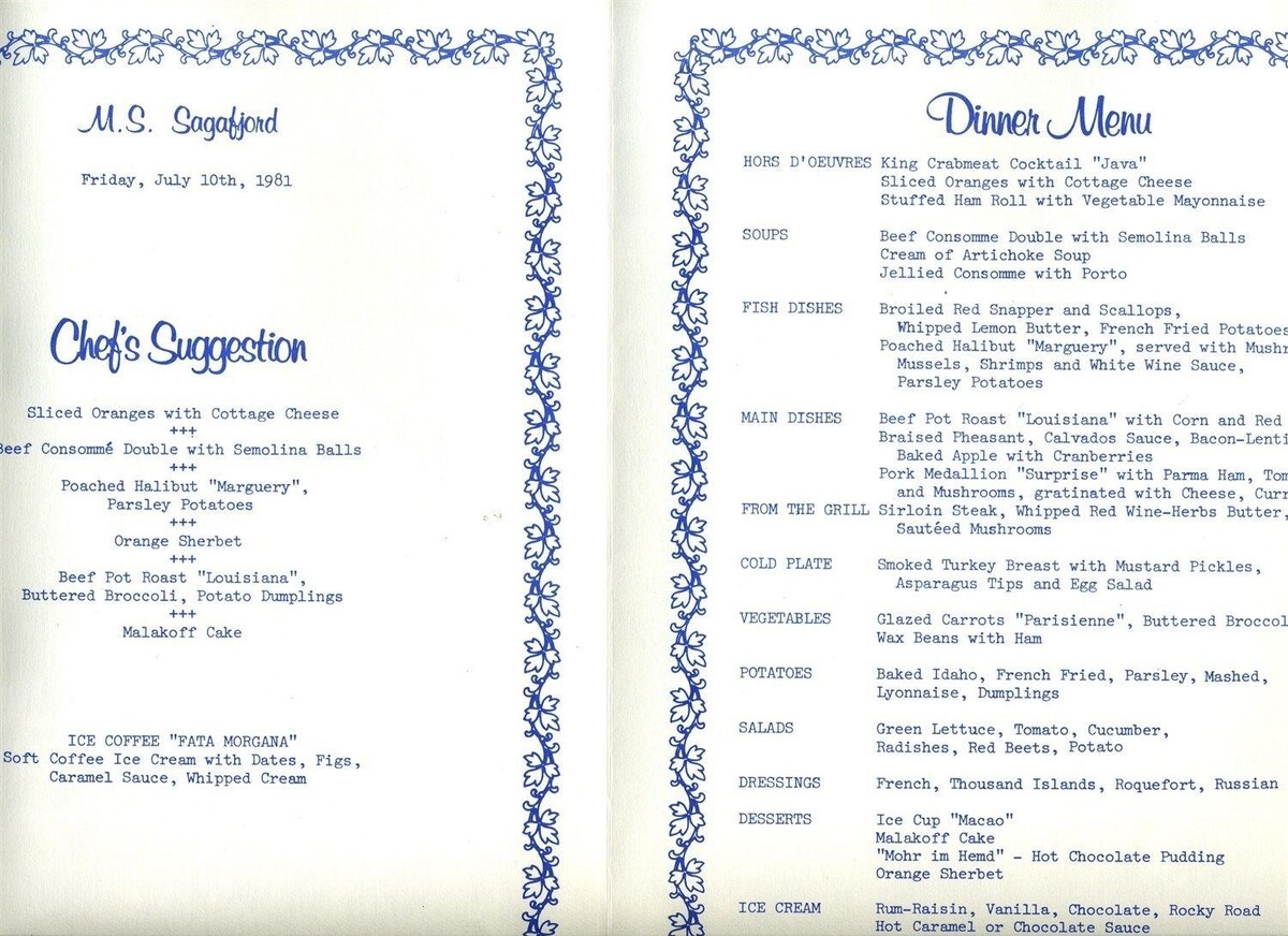 M S Sagafjord Menu 1981 Norwegian American and similar items