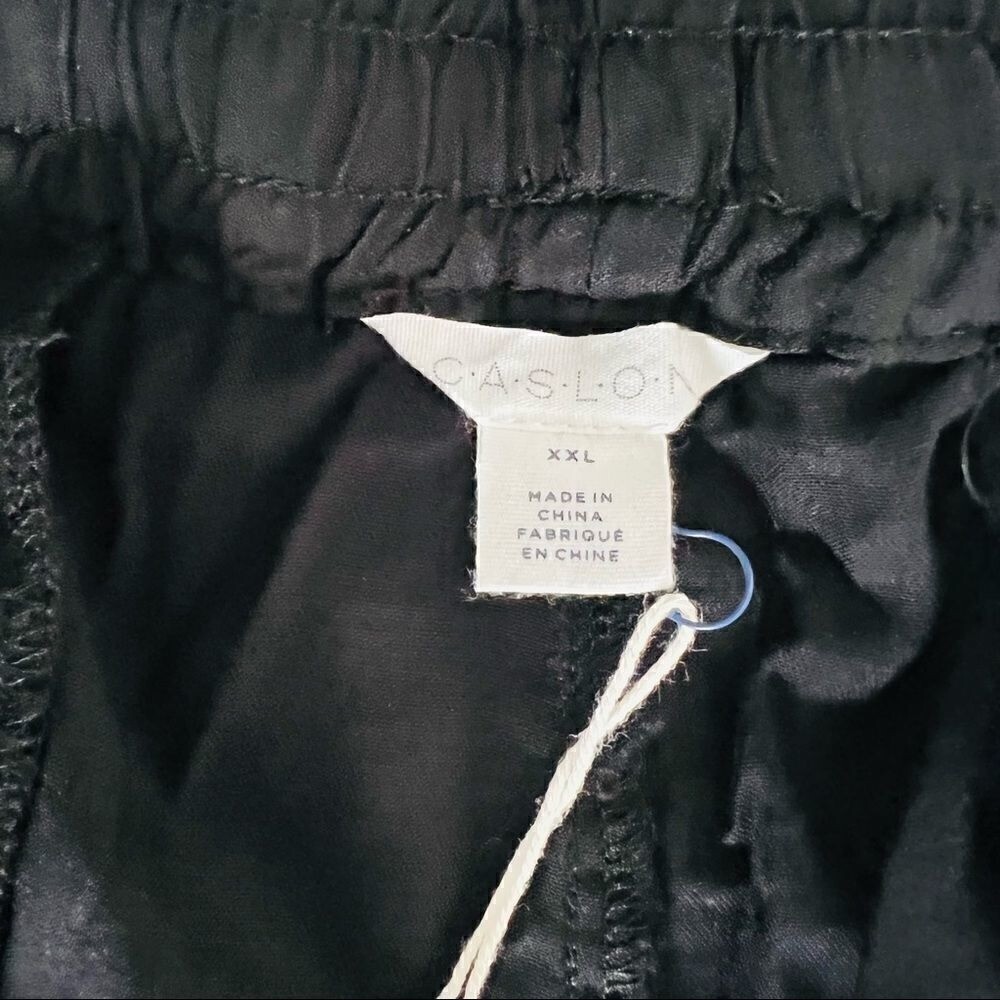 CASLON PULL ON TWILL SHORTS COLOR: BLACK SIZE: XXL (18) High rise. Casual yet polished, these lightweight cotton-blend shorts have sleek pockets and a comfortable elastic waist. Elastic/drawstring waist Side-seam pockets; back welt pockets Side slits 51% cotton, 49% viscose Machine wash, tumble dry Imported