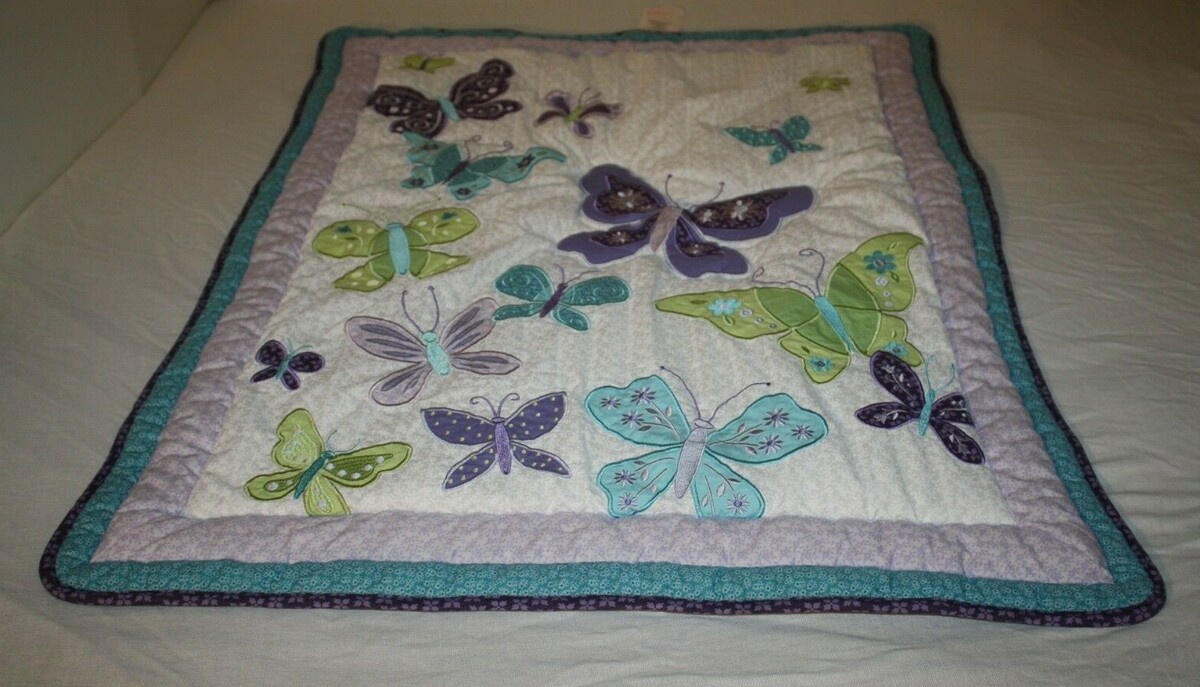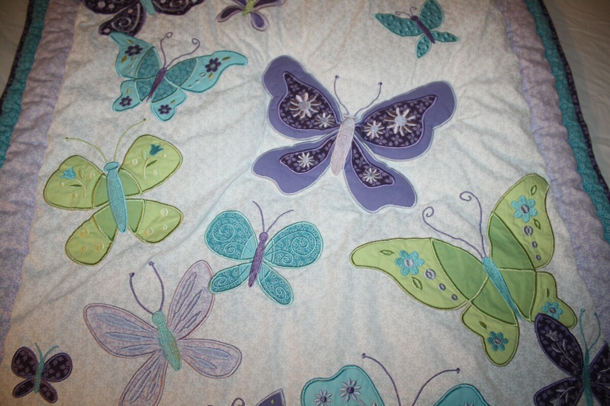 Nojo Teal Blue Purple Beautiful Butterfly Baby Blanket Quilt Crib Bed Comforter