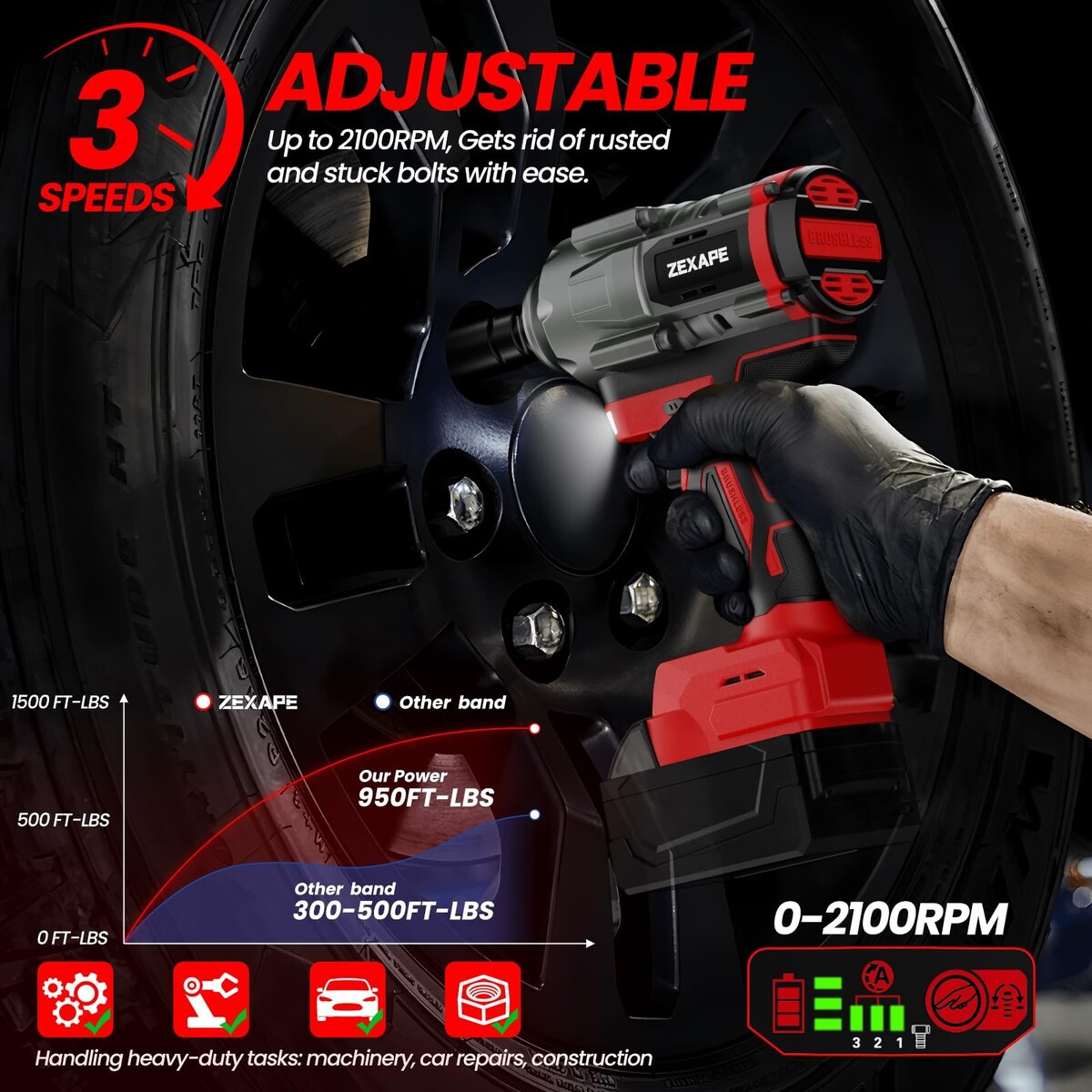 ???Accurate Control with 3-Speed Settings up to 2100 RPM? Match the power to the task for unparalleled precision. Whether you're doing delicate DIY projects or heavy-duty automotive work, choose from 3 adjustable speed settings (1200/1600/2000 RPM). This prevents damage to softer materials and gives you complete command over every application.