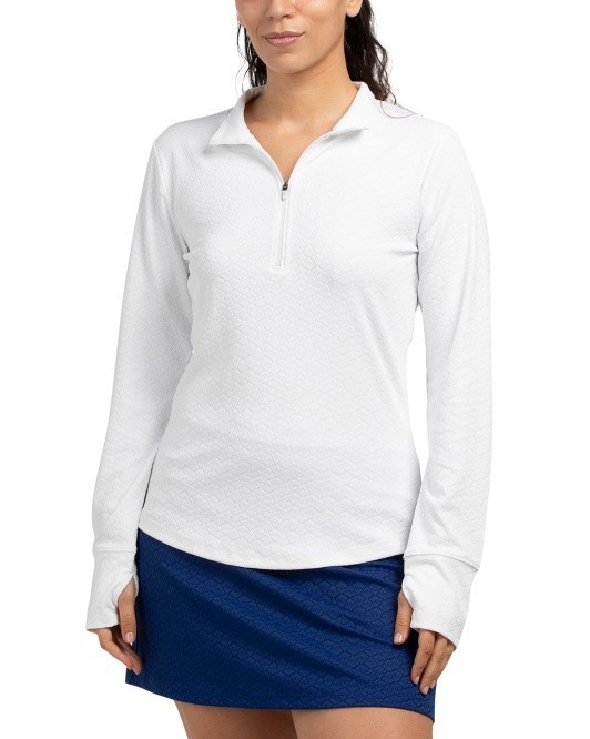 NWT SIGRID OLSEN BRIGHT WHITE TEXTURED Long Sleeve Mock Golf Shirt size XL