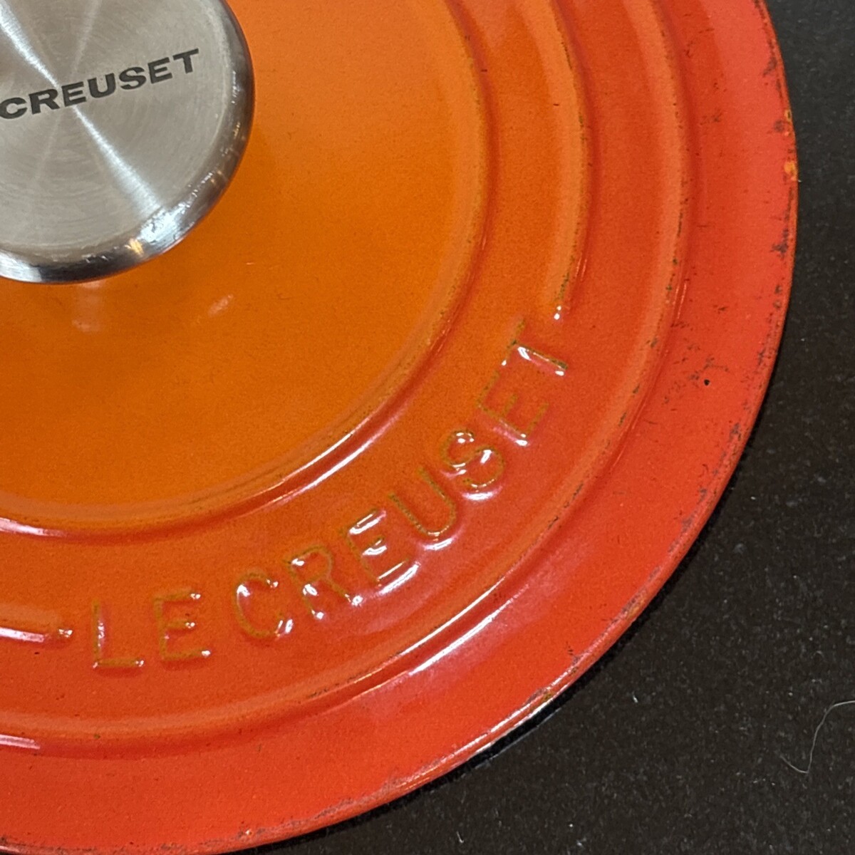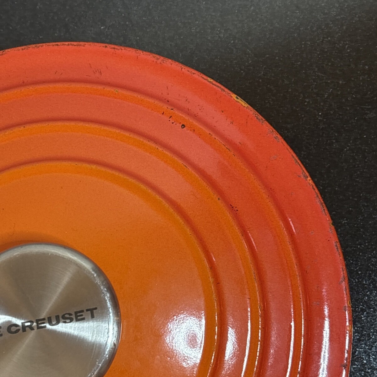 Le Creuset Replacement Lid #18 in Flame Orange with a Stainless Signature Knob