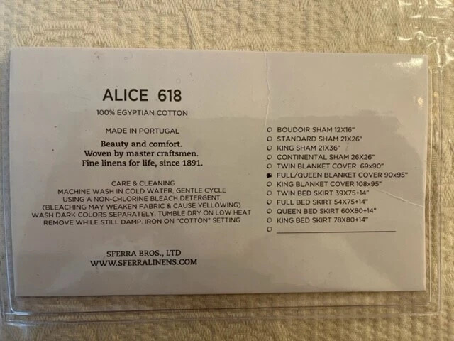 (1) Full Queen Coverlet Dimensions: 90" x 95"