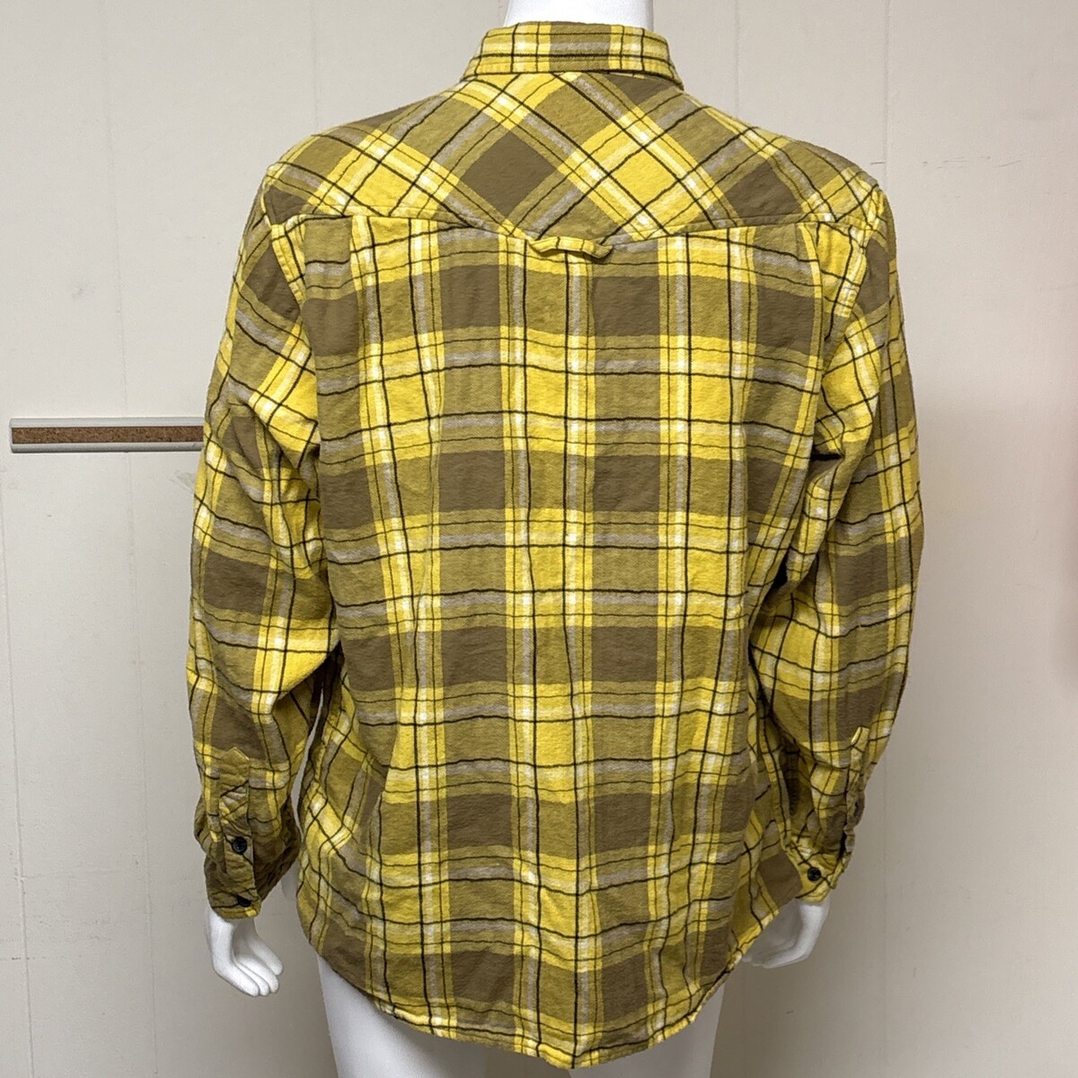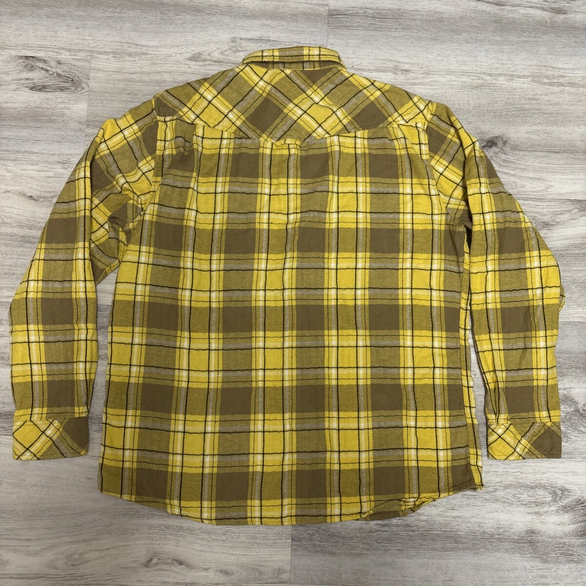 MR BALLEN Shirt Mens XL Yellow Black Plaid Flannel Strange Dark and Mysterious