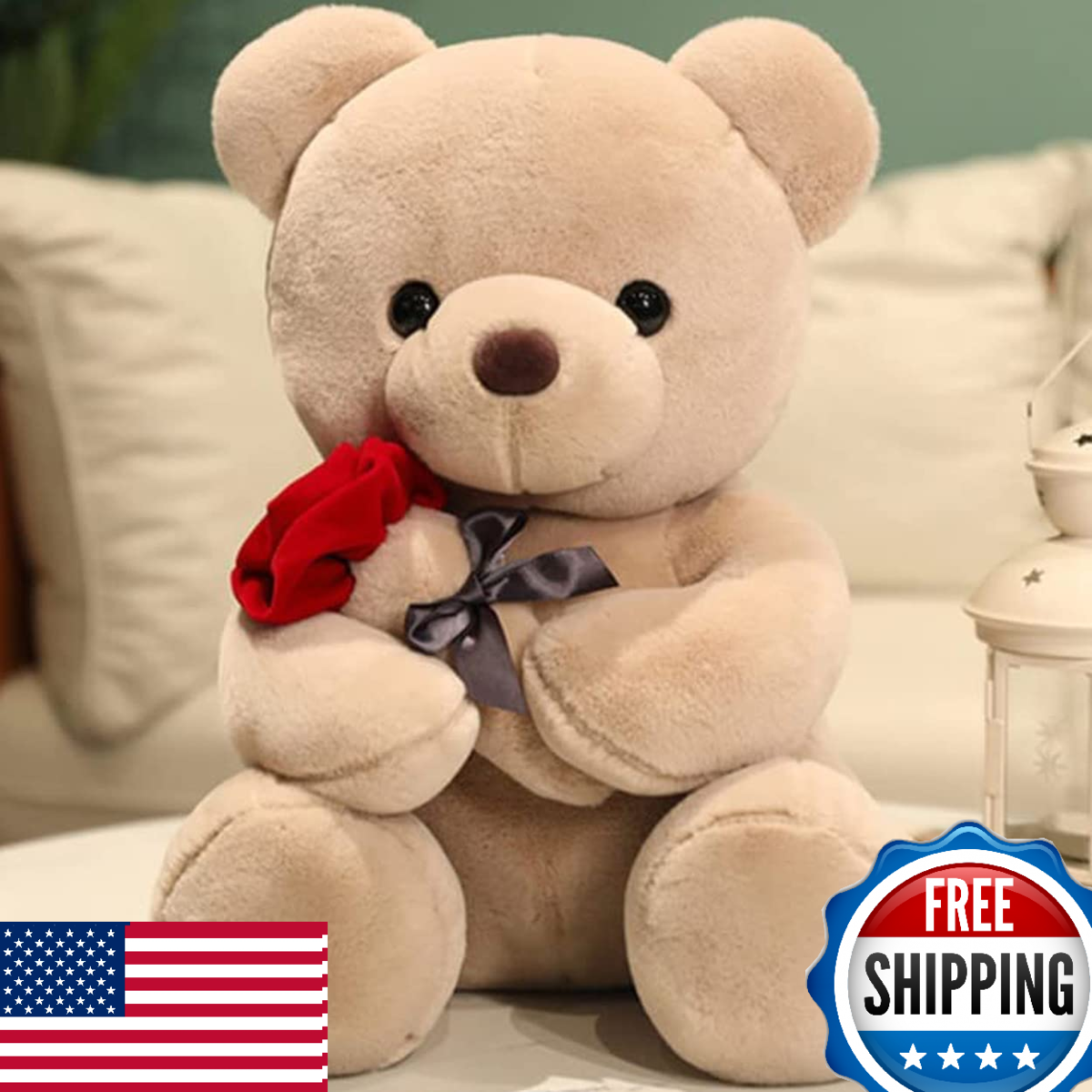 ?Soft and Adorable Teddy Bear?The texture is super soft, it?s a fuzzy material.It's so fluffy.When you hold it, you will sink into its comfortable and elastic, smooth feel and delicate touch.Perfect huggable plush animal,?A Sweet Teddy Bear?Cute and cuddly bear with rose,just as an?I love you? reminder. It?s very pretty and I am sure whomever you give it to will appreciate the sentiment!It is super soft and definantly will make your loved one smile.,?Great gift for anyone in the family (or friend)?Perfect gift to share with your loved one. Plush, Soft, Cute, and Fun!If you want to send a little happiness this will do it. For example,Valentine?s Day,Mother's Day,Christmas, Thanksgiving and birthday.,?Size?S:13.7inch(25cm),M:14inch(35cm),L:18inch(45cm)?Material?Plush Teddy Bear is filled with elastic cotton which is softer than ordinary, skin-friendly fabrics give you better skin touch feeling, make the Plush toy way soft and comfortable.,?After-sales Service?Great quality!If you encounter any problems in use, please feel free to send us an email via Amazon. We not only provide you with high-quality and cheap plush stuffed animal teddy bear, but also professional Sincere service.