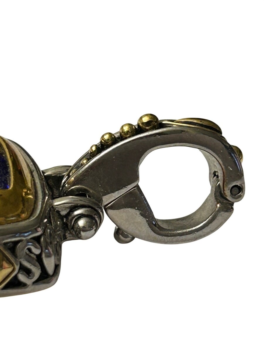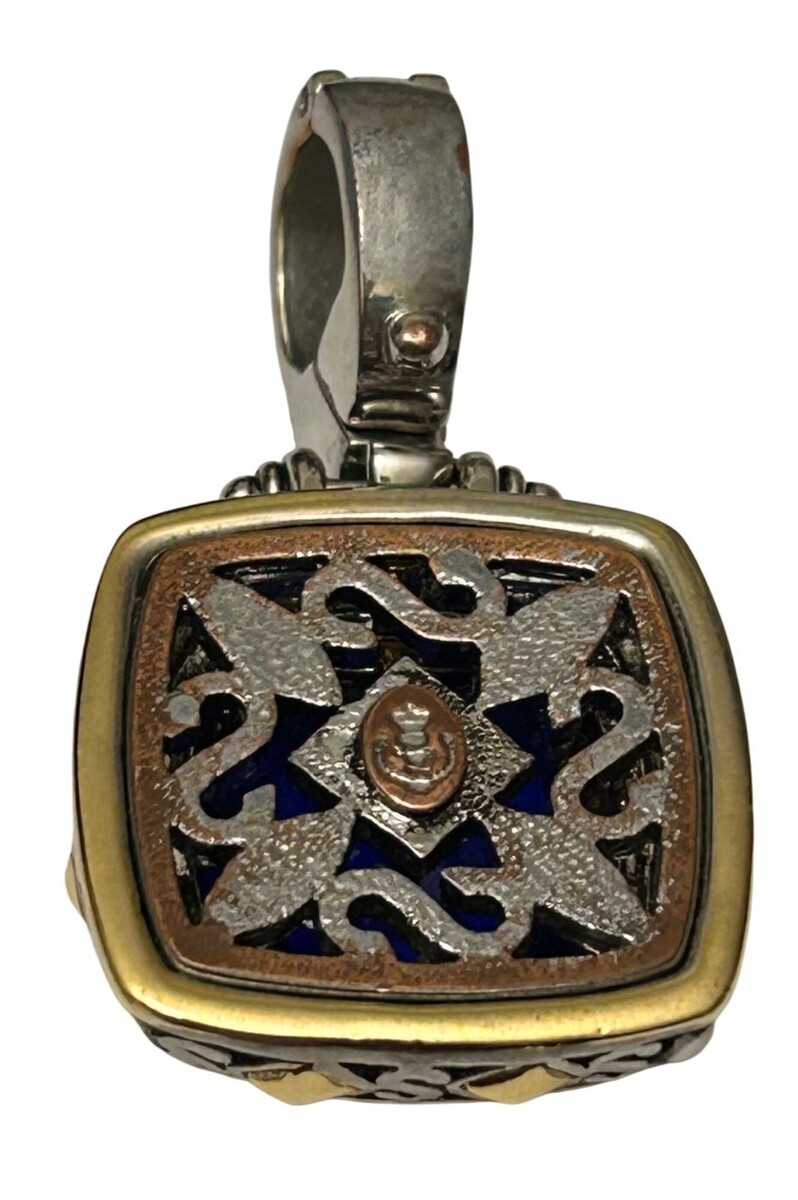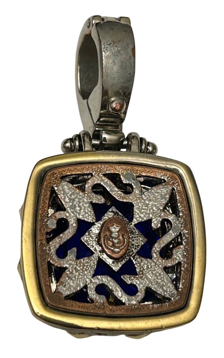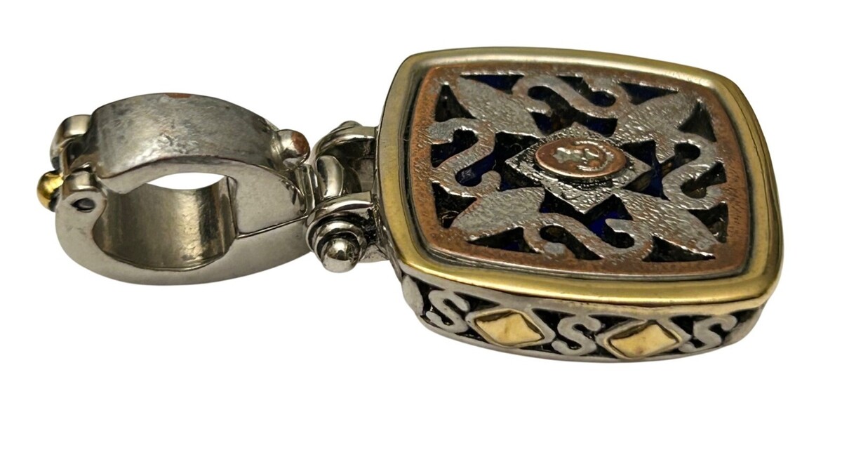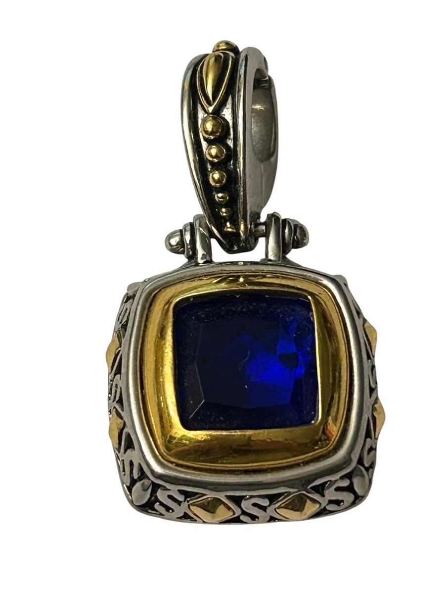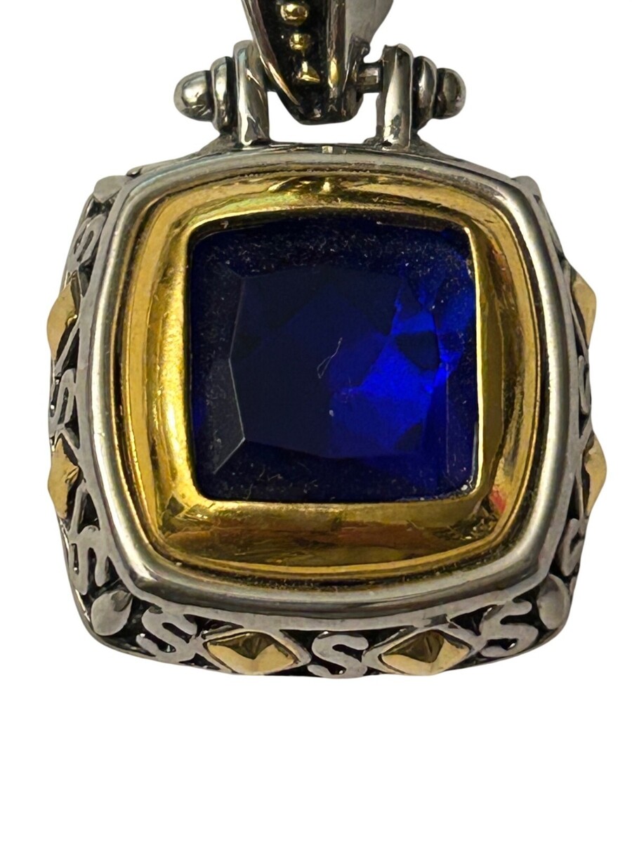 Premier Designs Silver & 18K Gold Plated Pendant - Deep Blue Glass Stone Revers.