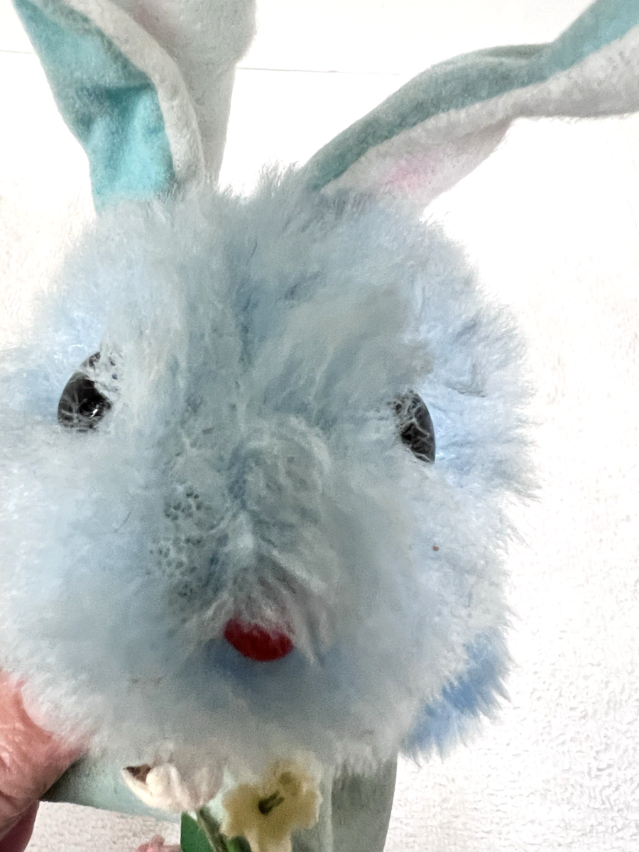 Vintage Dream Pet Blue Fluffy Bunny Rabbit w Flowers 7.5 Inch