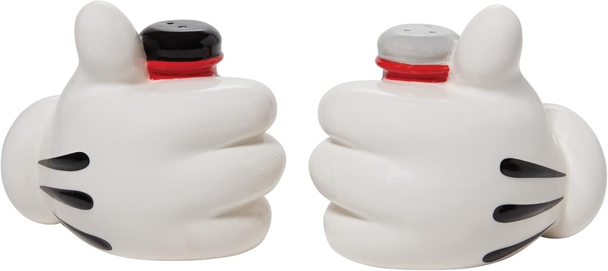 DESIGN: depicts Mickey Mouse's iconic gloved hands holding salt and pepper shakers
