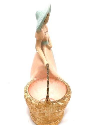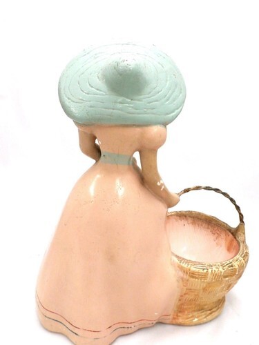 VTG Chalkware Planter Girl Woman Large Hat & Basket 1930s Business Card Holder