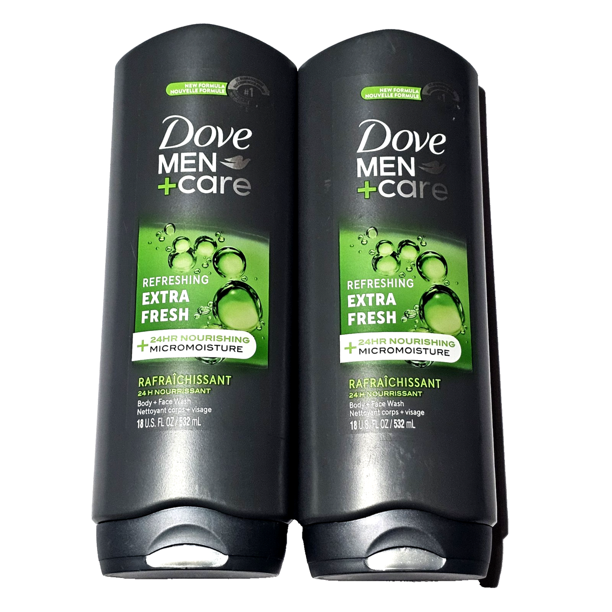 2 Pack Dove Men Body + Face Wash Refreshing Extra Fresh + 24Hr Nourishing 18oz.