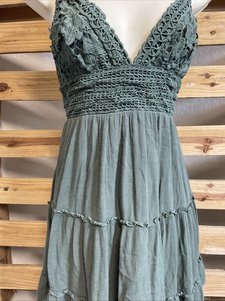 Illa Illa Spaghetti Strap Olive Green Sundress Dress Woman's Size M KG