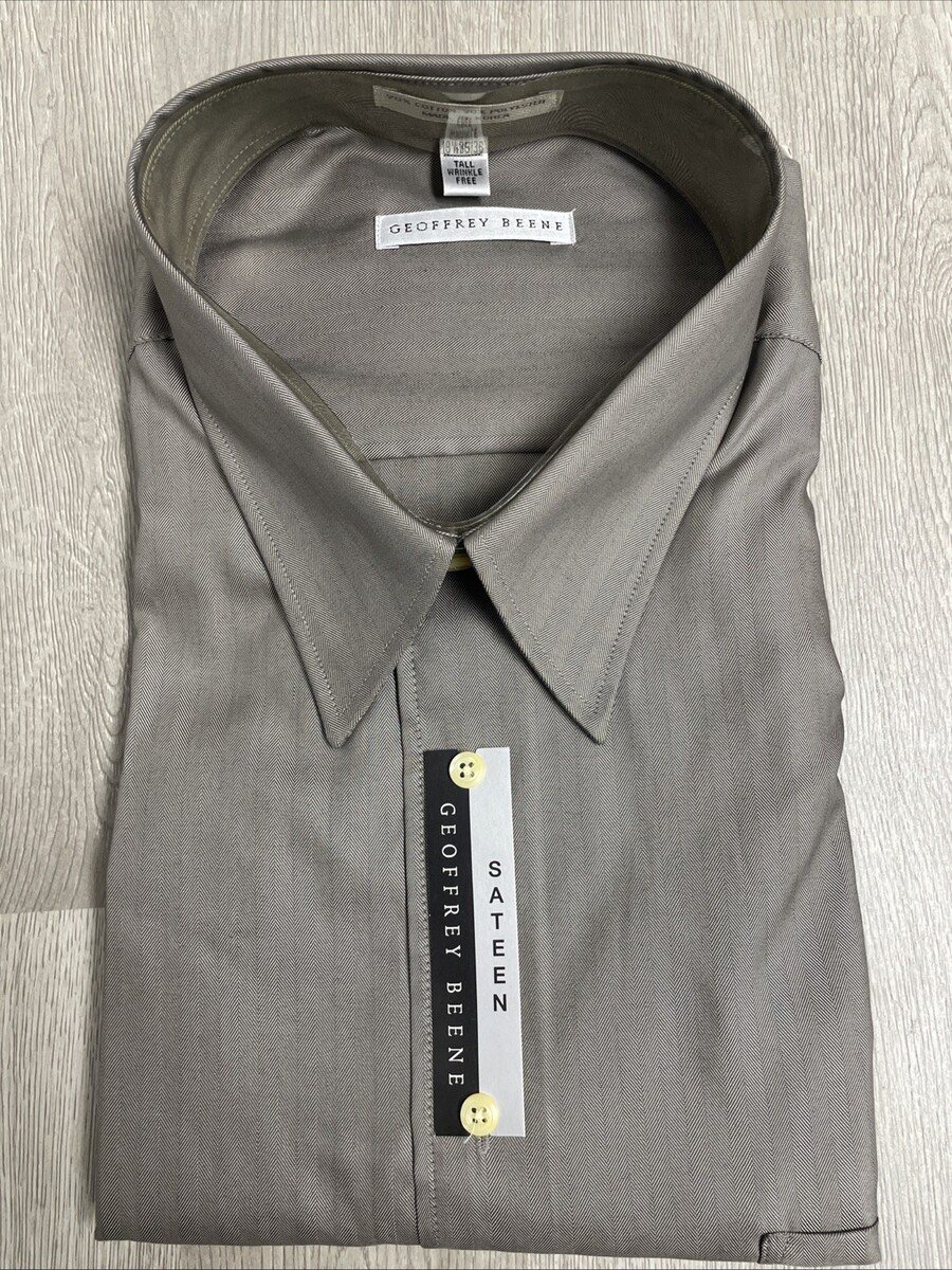 Geoffrey Beene Men’s Dress Shirt 18.5 35/36 Tall Fit Sateen Aluminum NWT MH JD