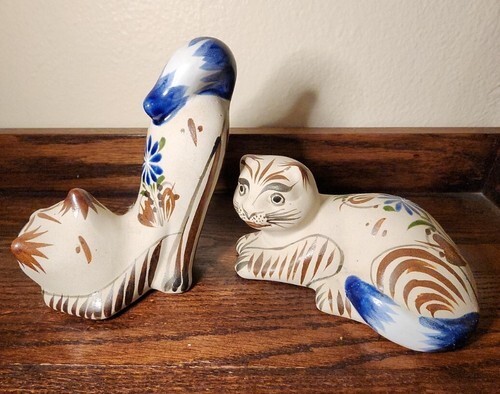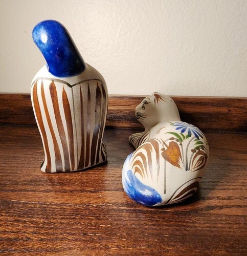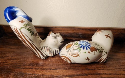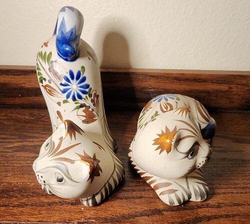 Vintage Tonala Mexico Hand Painted Ceramic Mexican Pottery Kitty Cat Kitten Pair