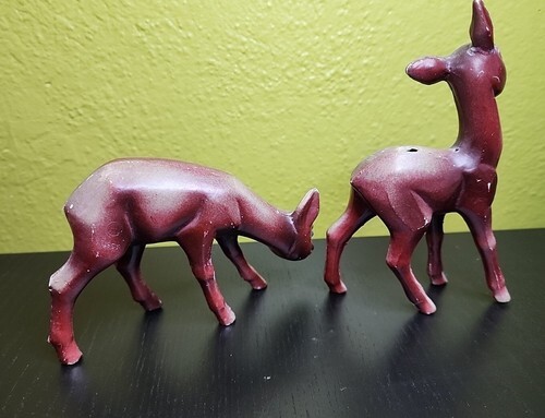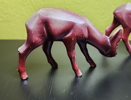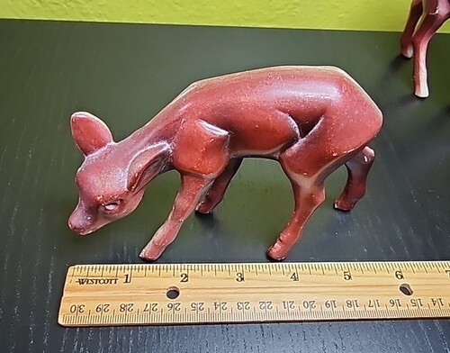 Deer Fawn Figurines Hard Plastic Rhinestone Eyes Vintage 1960s Christmas Decor 2 6"