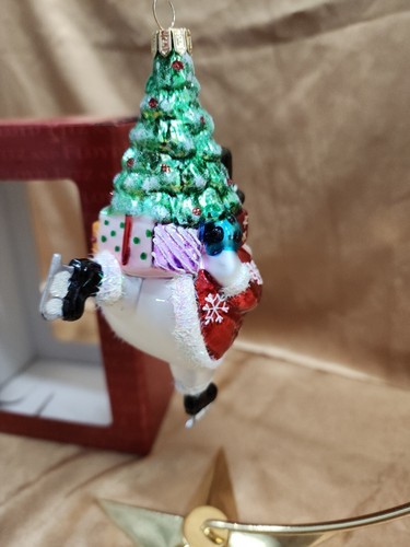 Fitz And Floyd Skating Snowman Christmas Ornament 19-1641 Boxed 5.5 in