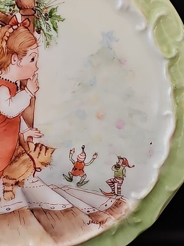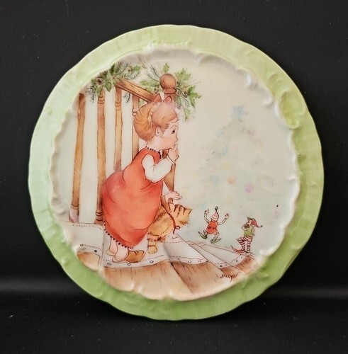 Vintage Hand Painted Christmas Morning Elves Little Girl Porcelain 6" Decor