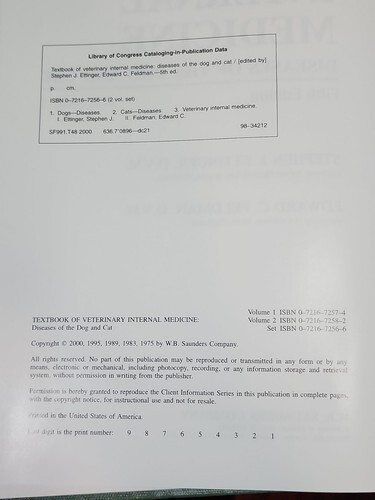 Textbook of Veterinary Internal Medicine 2 Vols Feldman & Ettinger Fifth Ed HC